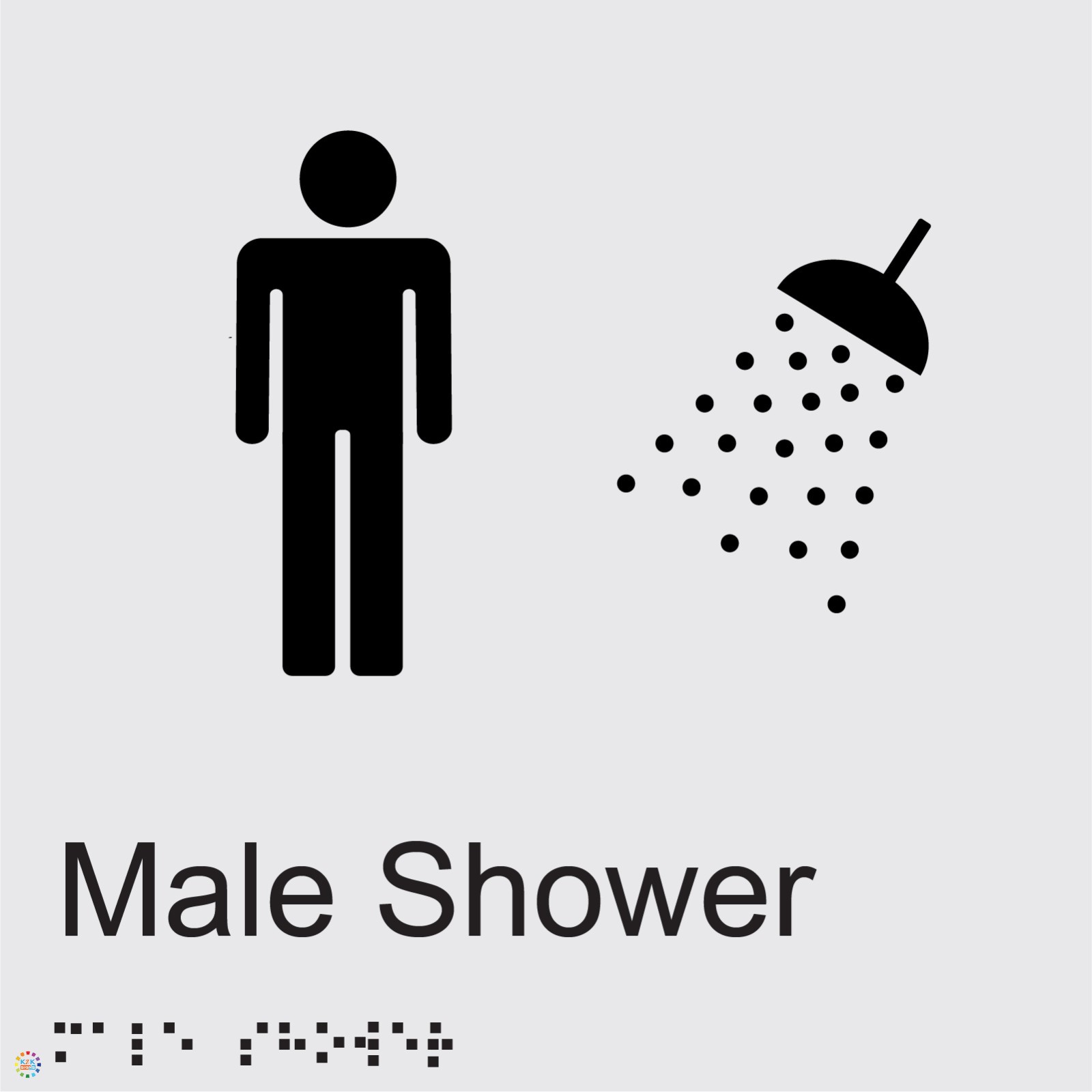 Enhance accessibility and provide clear facility identification with the Male Shower Braille and Tactile Sign (BR46), created to direct individuals toward designated male shower amenities in public buildings, workplaces, and community environments. This sign features raised tactile text, Grade 1 Braille, and a clear male shower symbol, helping people with low vision easily identify the correct washroom area. Suitable for offices, gyms, schools, hospitals, recreation centres, transport hubs, and hospitality venues, it supports safe movement and consistent wayfinding across your premises. Manufactured from durable 3mm thick PVC, the sign is offered in a silver background with black text or a black background with white text, ensuring strong contrast and dependable readability in indoor or sheltered outdoor locations. Weather-resistant, impact-resistant, and supplied with secure double-sided tape, it provides quick installation on clean, smooth surfaces. Compliant with BCA/NCC Part D4D7, Specification 15, and AS1428.1-2009, the sign ensures reliable identification of male shower facilities for all users.HEAVY-DUTY BUILD: Manufactured from 3mm PVC with a single-piece moulded structure that enhances hygiene, prevents dirt accumulation, resists cracking or delamination, and remains reliable during frequent handling and routine cleaning in busy environments where strong and durable tactile guidance is required for accessible navigationFINISH VARIANTS: Available in two clear high-contrast options, including a silver background with bold black text for a clean and modern presentation or a black background with bright white text that supports improved visibility for low-vision users, ensuring consistent readability across workplaces, public facilities, educational areas, and healthcare locationsOPTIMAL DIMENSIONS: Produced in a 210mm x 180mm layout that provides generous space for tactile lettering, accurately spaced Braille, and an organised structure while remaining compact enough for installation on doors, walls, and approach points without overwhelming surrounding surfaces or interfering with architectural flowLASTING PERFORMANCE: Designed to endure environmental exposure and frequent contact, maintaining clarity and dependable functionality whether installed indoors in active corridors or outdoors in exposed areas where moisture, sunlight, temperature fluctuations, and ongoing handling might otherwise reduce readability and durabilityEASY INSTALL METHOD: Supplied with strong double-sided tape that allows fast, tool-free mounting on clean and smooth surfaces, offering secure adhesion suitable for rapid accessibility improvements, convenient repositioning, and stable application on doors, wall sections, and entry areas requiring tactile guidance