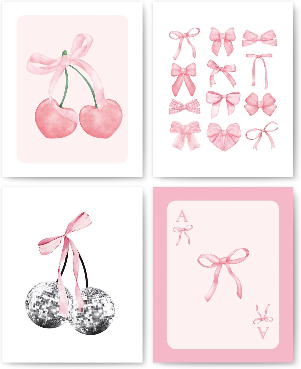 Pink Coquette Bow Trendy Preppy Wall Art Prints Set of 4, Coquette Room Decor, P