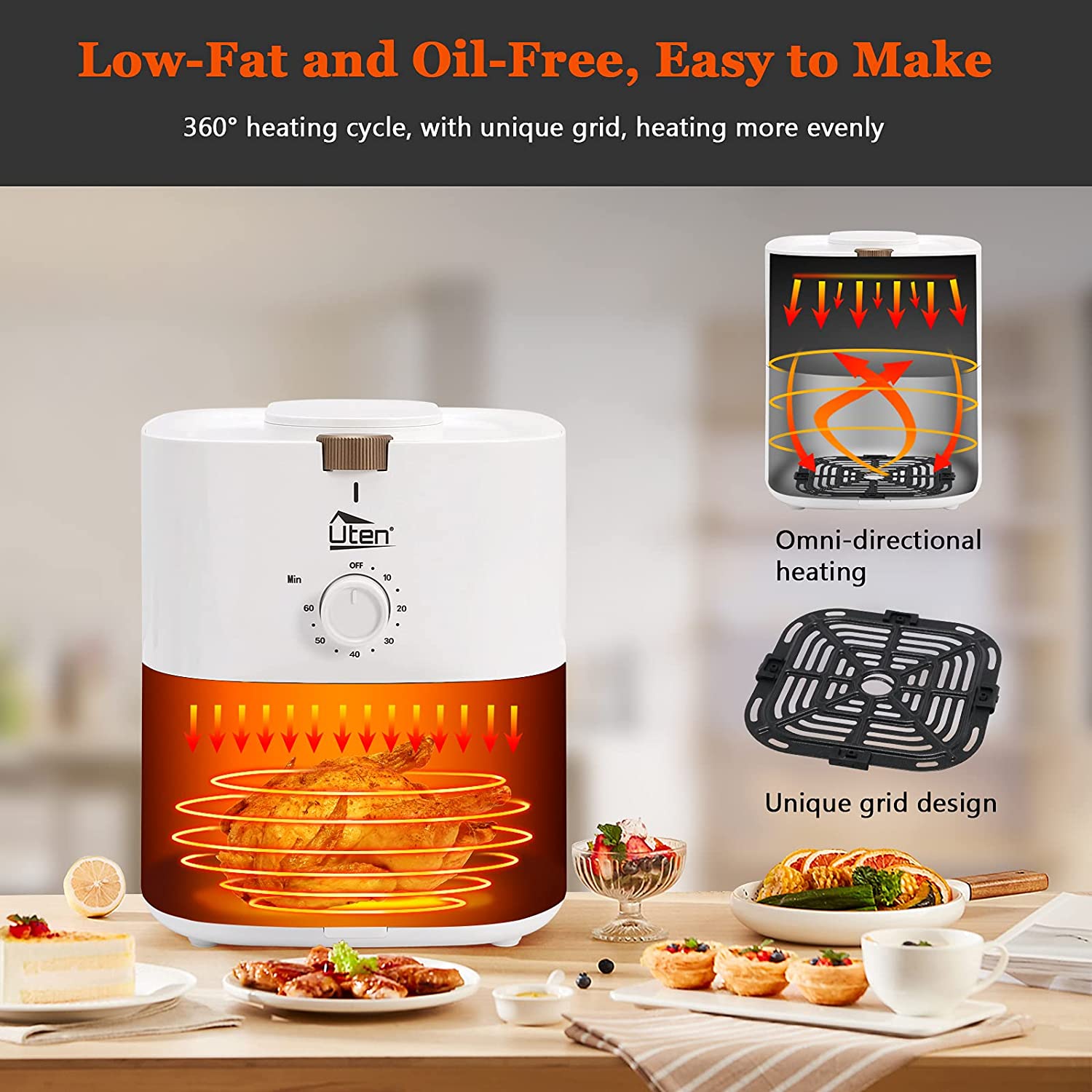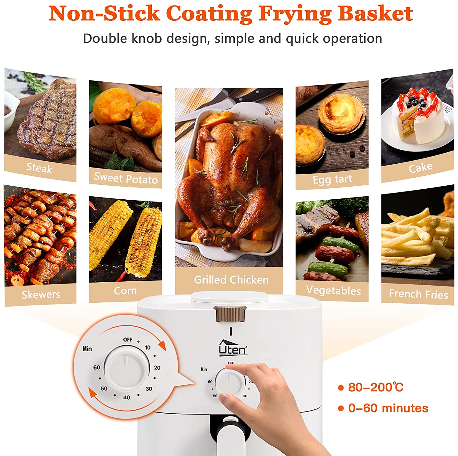Large Capacity & Efficient Heating Air Fryer -- Uten fryers have 4L basket that completely solves this problem, the Large size is perfect for the family and the party,