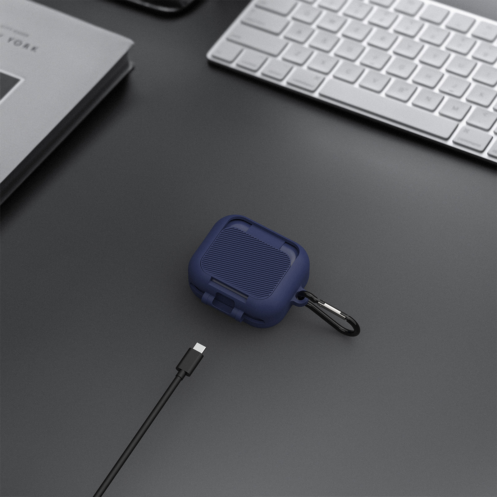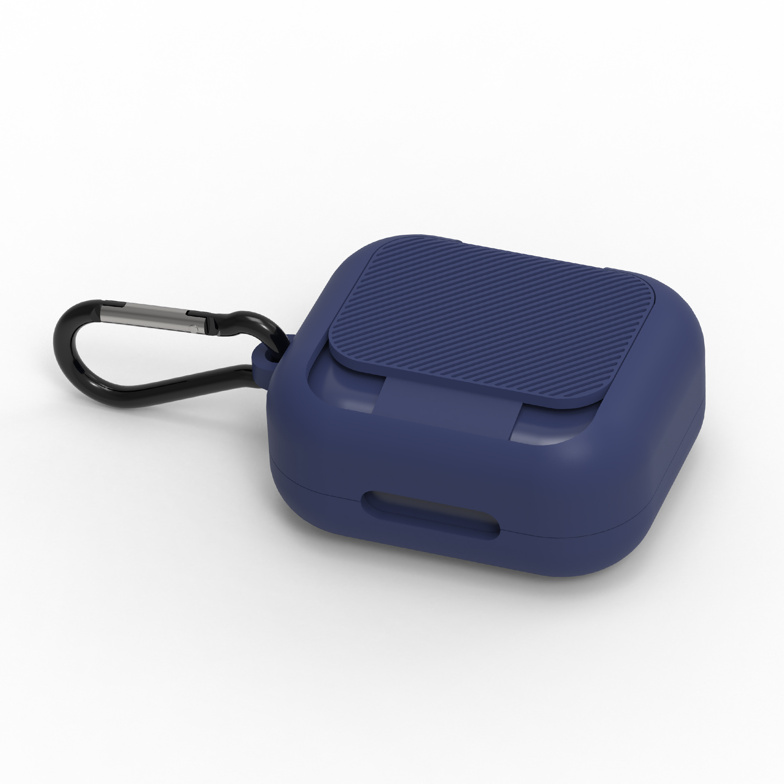- Adhesive strips inside for a more secure fit. Portable with keychain hook. Special cutout for charging your earbuds without removing the cover.