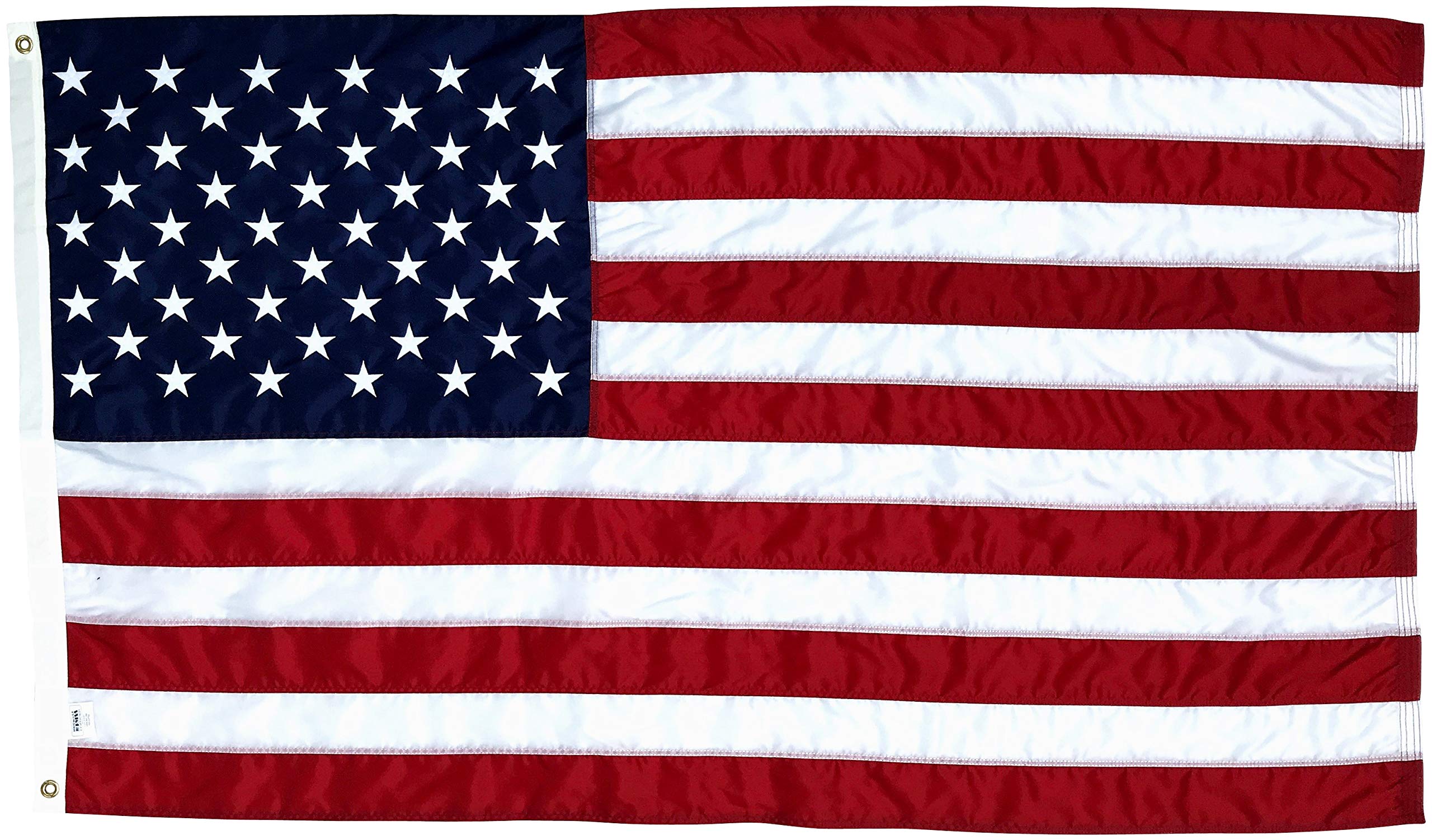 PREMIUM 3x5 FOOT AMERICAN FLAGAMERICAN MADEWe wanted a well designed flag worthy of the tribute it represents. And we wanted the flag to be home grown in the USA. Each of these flags is FMAA certified and labeled "Made in USA" so you can be confident in the quality of workmanship, and American pride that went in to creating each flag.STURDY ALL WEATHER MATERIALS - Blended Army duck cloth header in brilliant white - Finest 200 Denier heavy duty nylon specifically for outdoor use - #2 Solid brass rolled rim grommets with tooth washer for extra strength and durabilityCRAFTSMANSHIP OF THE FLAG - Double needle lock stitching on individually sewn stripes - Color matching thread on both sides front and back - Tightly embroidered brilliant white stars crafted to stand out on the richly colored star field - Reinforced fly end with folded hem and 4 rows of stitching to last in the wind - Double hem stitch on top and bottom corners of the fly hem to avoid tearing and frayingEXTRAAfter you order we will send a pdf with our quick guide to flag etiquette, highlighting important flag dates.We are located in the United States, support jobs here and couldn't be more proud of America. This flag was manufactured in America and we stand behind it. We won't rest until you are thrilled with your purchase.