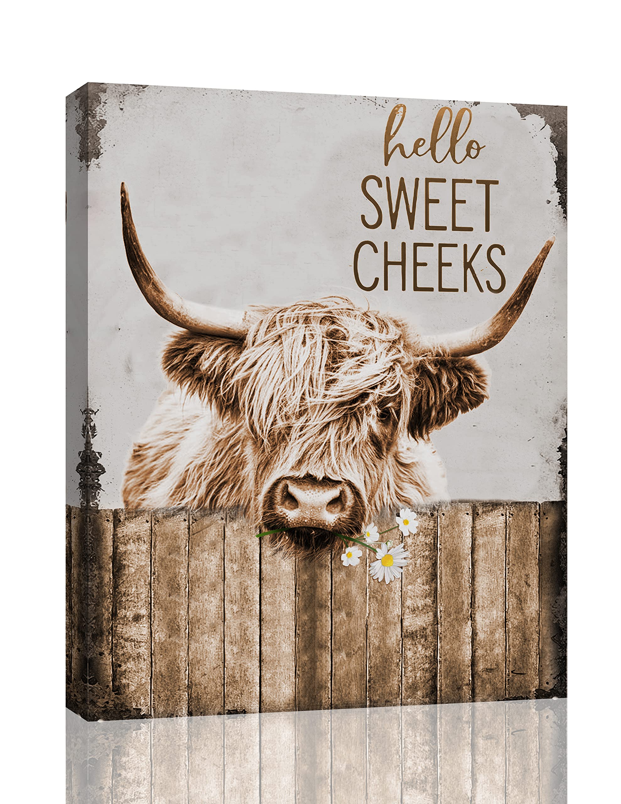Highland Cow Bathroom Decor Wall Art Funny Rustic Cow Pictures Wall Decor Farmhouse Bathroom Decor Country Cattle Painting Canvas Print Decorations For Office Bedroom Kitchen Dining Room Framed 12x16