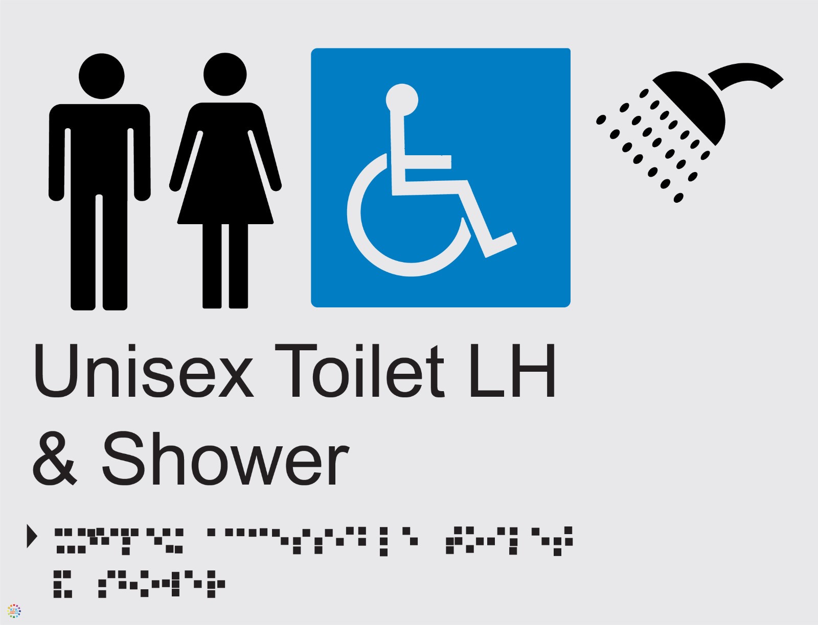 Enhance accessibility and provide clear directional guidance with the Unisex Disabled Shower LH Braille and Tactile Sign (BR85), designed to guide individuals toward left-hand unisex disabled shower facilities in public buildings, workplaces, and community environments. This sign features raised tactile text, Grade 1 Braille, and a clear, unisex disabled shower symbol oriented for left-hand entrances, assisting people with low vision to confidently locate the correct amenities. Ideal for offices, schools, hospitals, gyms, transport hubs, and hospitality venues, it promotes safe movement while supporting consistent accessibility communication throughout your premises. Manufactured from durable 3mm thick PVC, the sign is available in a silver background with black text or a black background with white text, providing strong contrast and long-lasting readability in indoor or sheltered outdoor areas. Weather-resistant, impact-resistant, and supplied with secure double-sided tape, it allows fast and reliable installation on smooth, clean surfaces. Fully compliant with BCA/NCC Part D4D7, Specification 15, and AS1428.1-2009, the sign ensures dependable guidance and clear identification of left-hand unisex disabled shower facilities for all users.STURDY BUILD QUALITY: Constructed from 3mm PVC with a single-piece moulded design that enhances hygiene, prevents dirt accumulation, resists cracking or delamination, and endures frequent handling and routine cleaning in high-traffic areas where durable tactile guidance is essential for consistent accessibilityFINISH VARIANTS: Supplied in two high-contrast options, including a silver background with bold black text for a clean, modern appearance or a black background with bright white text that improves readability for low-vision users, ensuring clear visibility across offices, educational facilities, public buildings, and healthcare environmentsPRACTICAL DIMENSIONS: Designed in a 210mm x 180mm format that provides ample space for tactile lettering, accurately spaced Braille, and a well-organised layout while remaining suitable for mounting on doors, walls, and access points without obstructing surrounding architectural features or creating visual clutterLONG-LASTING PERFORMANCE: Engineered to resist environmental exposure and frequent handling, maintaining clarity and reliable functionality whether installed indoors along busy corridors or outdoors in exposed areas where sunlight, moisture, temperature changes, and regular contact could otherwise reduce readability and durabilityEASY INSTALLATION METHOD: Supplied with strong double-sided tape for rapid, tool-free mounting on smooth, clean surfaces, offering secure adhesion suitable for quick accessibility upgrades, simple repositioning, and stable placement on doors, walls, and approach areas where tactile guidance is required