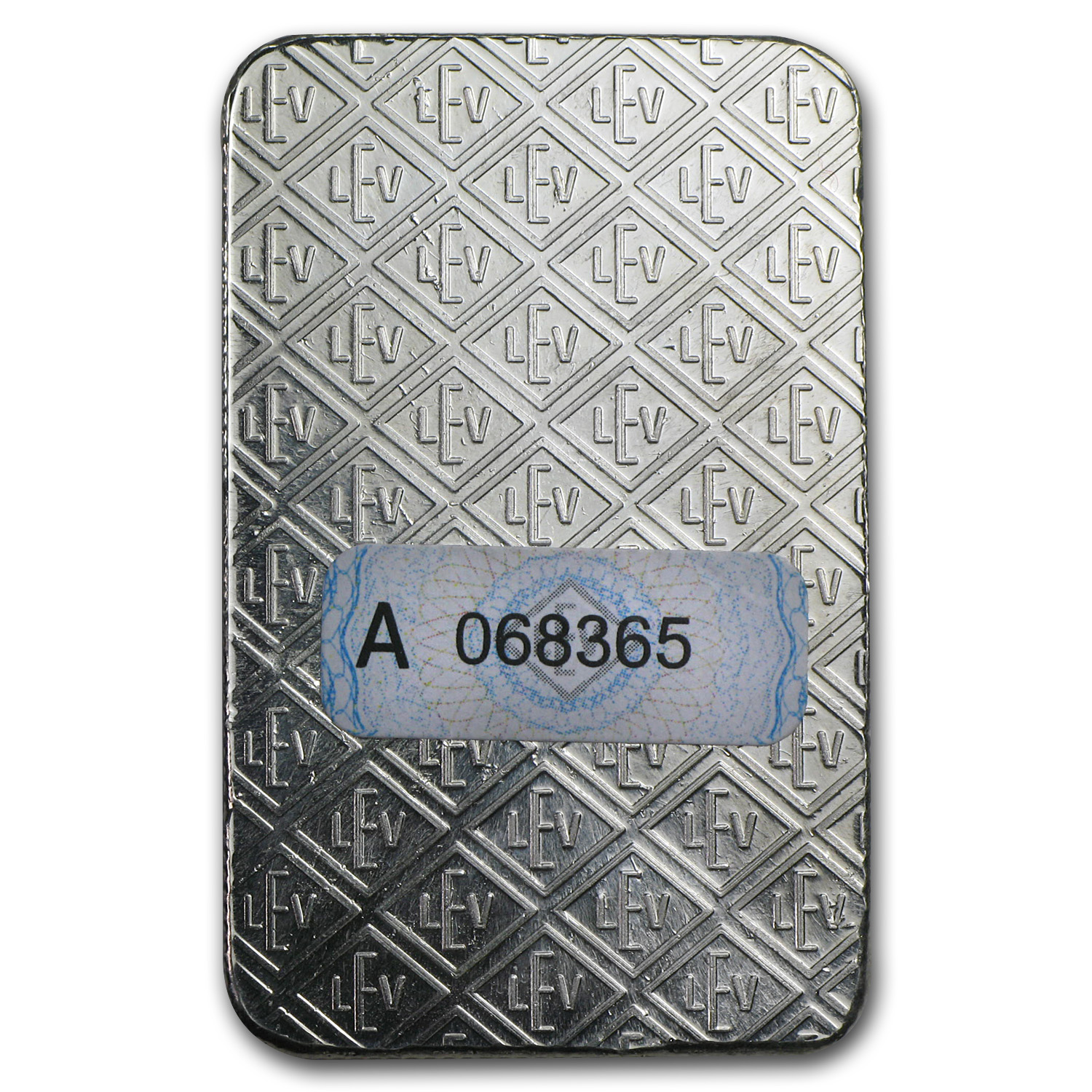 - Reverse: Textured with the repeating LEV rhombus. Printed on the reverse is also an invisible varnish that, when placed under a UV or black light, will show the LEV rhombus and year of mintage glowing blue!