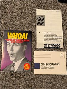 The box has some light wear throughout. The cartridge is in good condition. It is authentic and tested. There were no save files on this cartridge so it may need a new battery. The manual and poster are in good condition as seen. One of the other inserts has a bend (see close up photo)