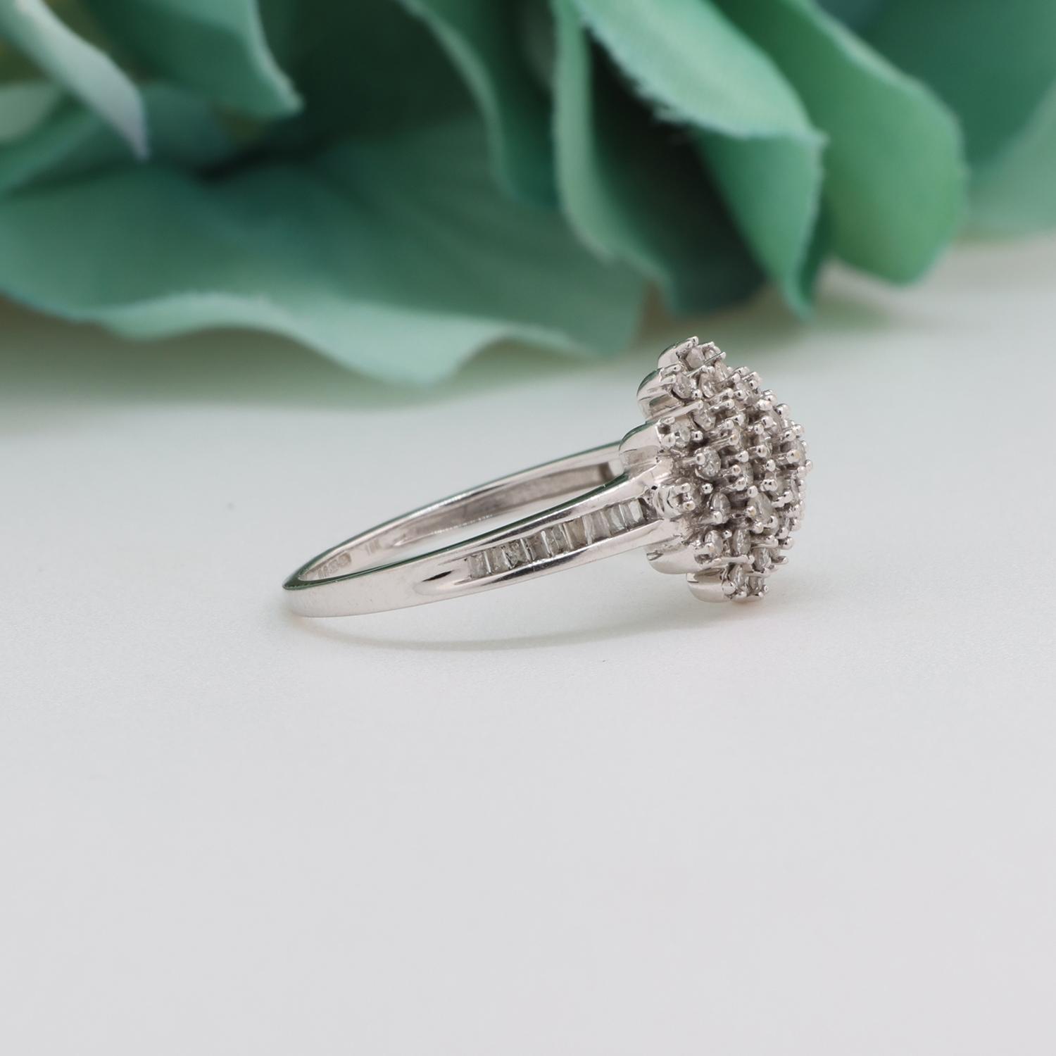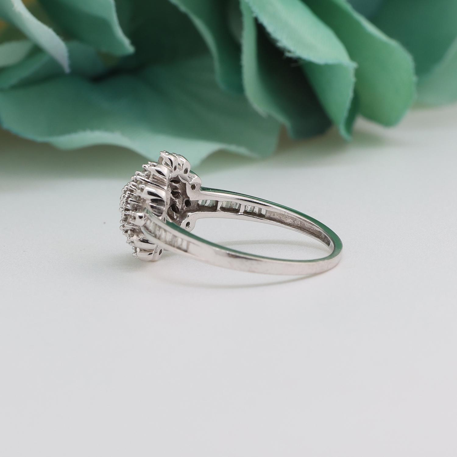 Cluster Diamond Floral Ring 10K White Gold 0.50 TW Round Baguette Size 7