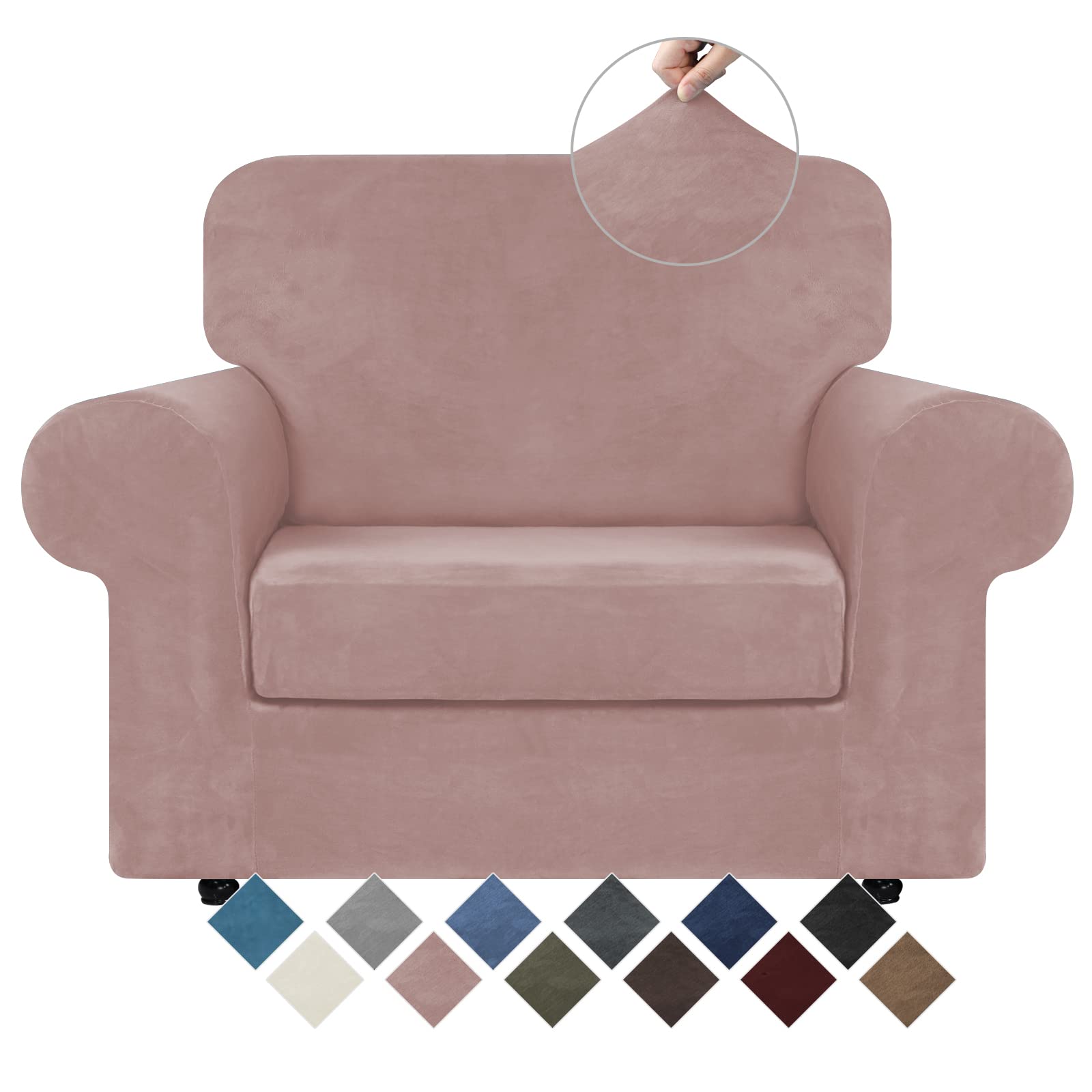 Velvet Stretch Chair Sofa Slipcover - 2 Pieces Luxury Soft Velvet Plush Couch Cover Furniture Protector with Elastic Bottom for Pets, Machine Washable, Pink, Small