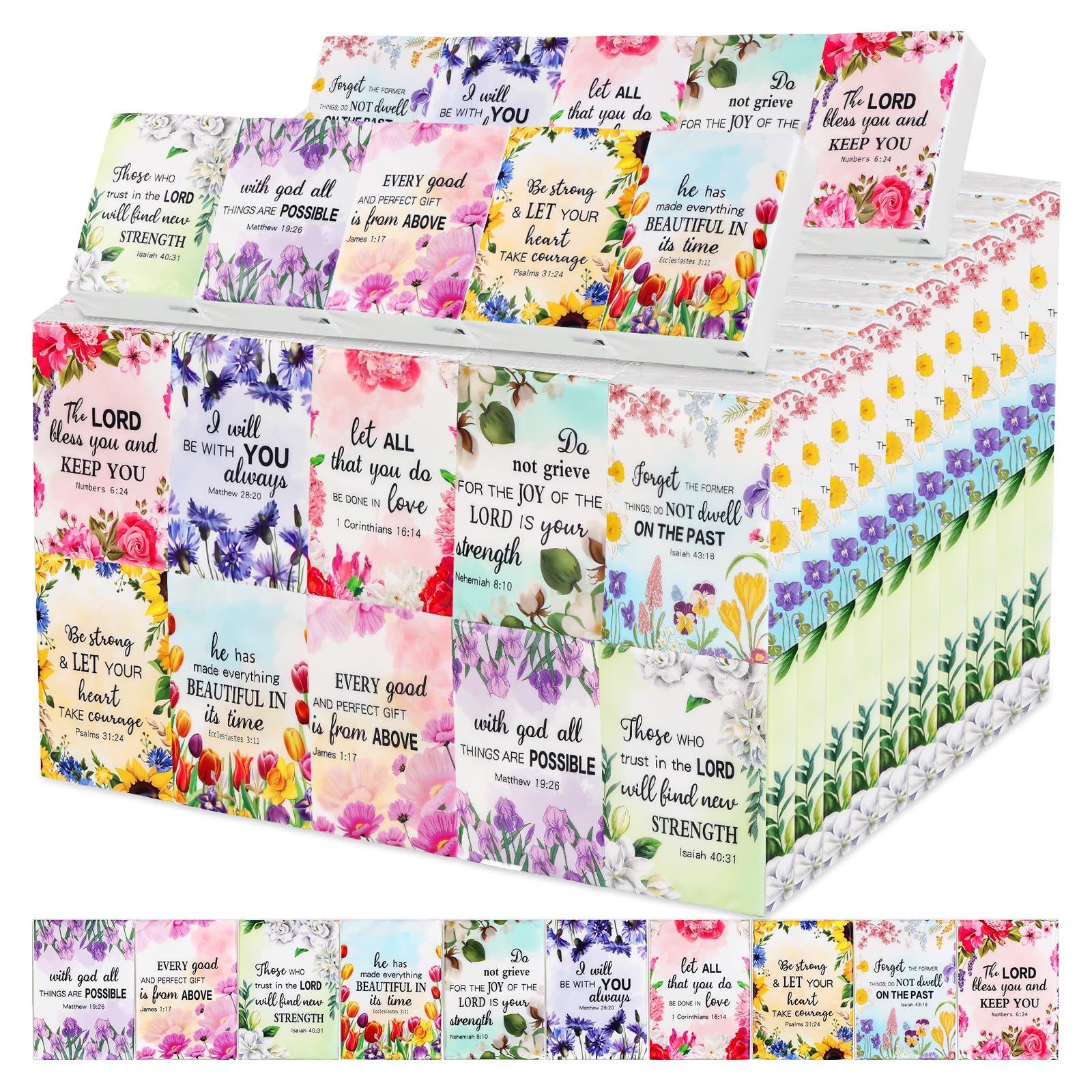 Exquisite Bible Verse Floral Design: these pocket tissue packs feature 10 different floral patterns with the different Bible verse, elegant and fresh, beautiful and stylish, making them suitable for church, Christian, religious parties; These small tissue packs are also great for weddings, graduation, engagement parties, and christening parties