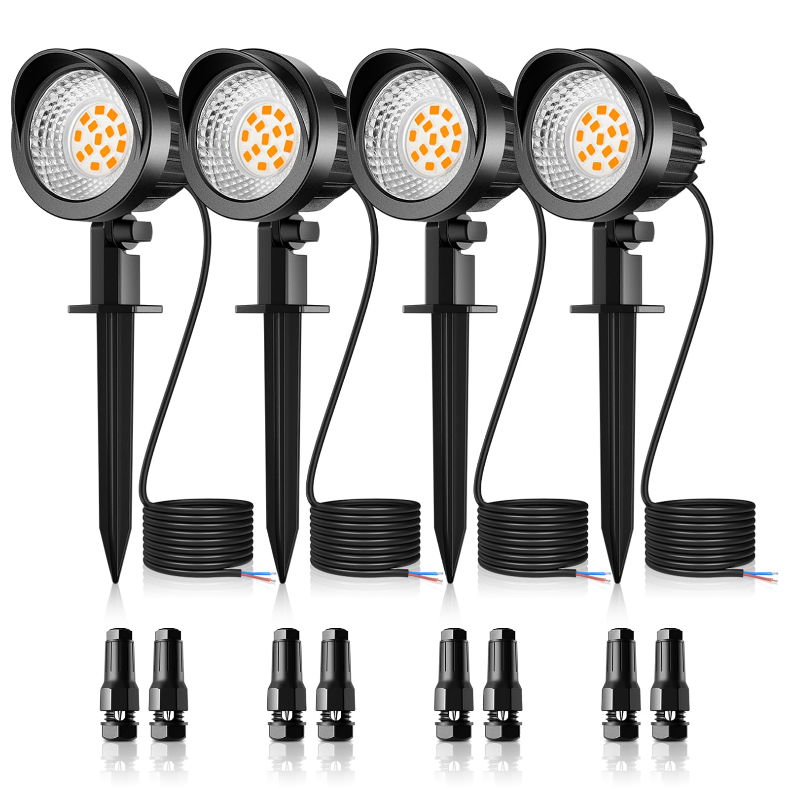 Easy to Install: Simply mount it on the wall with base or insert the light spike bracket into the ground, connect with connectors, just need 5mins or less to use immediately! Extra accessories needed: transformer, wire connectors and low voltage wires (NOT INCLUDED in this pack)