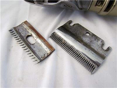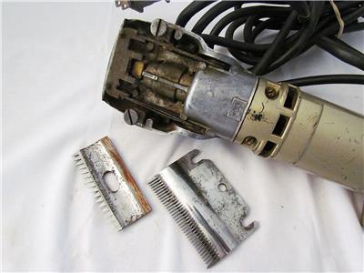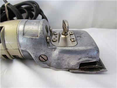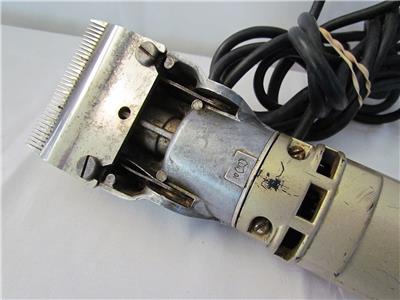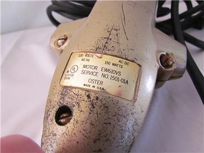 Nice, older Stewart Oster variable speed shears. The body is marked as 1501-01A, and it has a 510 head and an 84 AU blade set. It has the normal scuffs and scratches you'd expect from use but the motor runs well and the variable speed switch works as designed. The cord is in good shape with no cracks or cuts.