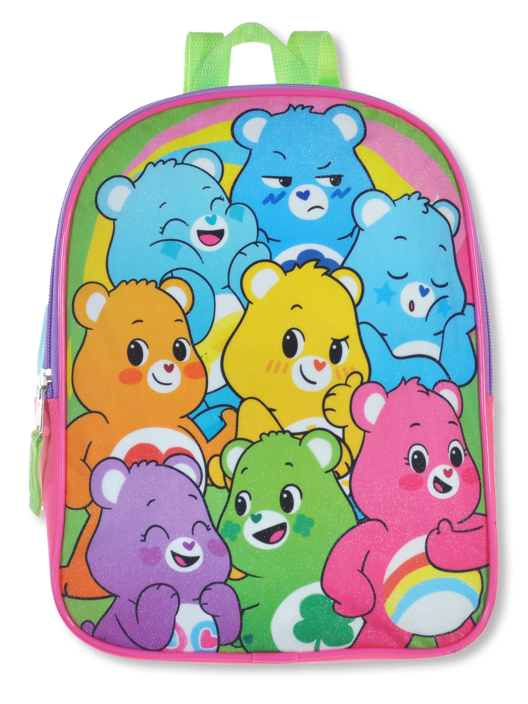 She'll love the glittering design of this mini backpack starring her favorite Care Bears! Care Bears backpack Polyester construction with glitter front Carry handle Graphic applique Zip closure Adjustable straps Contoured piping Measures 11" H x 9" W x 3" D Spot clean only Made in China