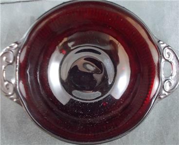 This distinctive pattern was produced by Anchor Hocking from 1936 through 1940 and is now discontinued. It features ruby colored depression glass.