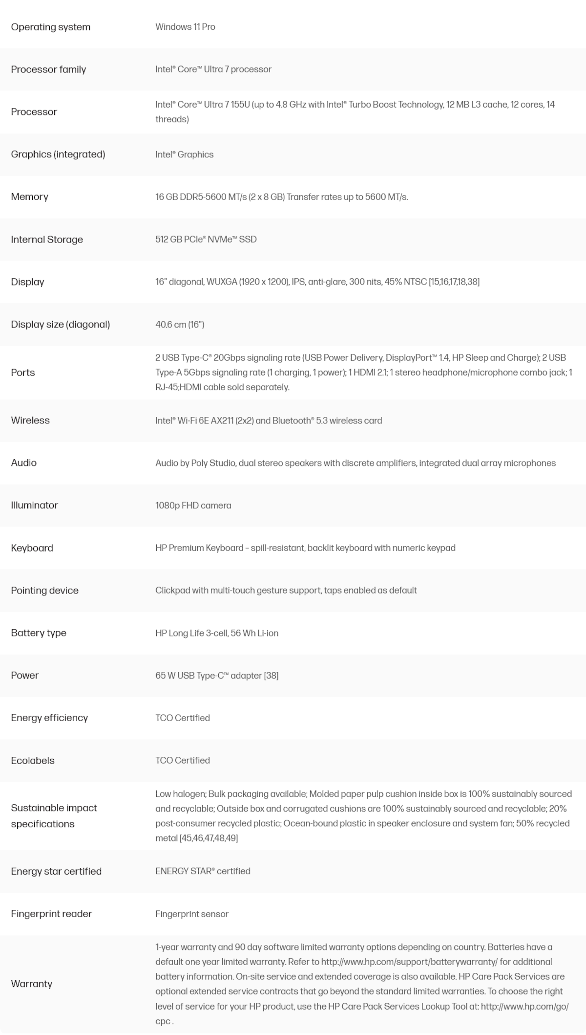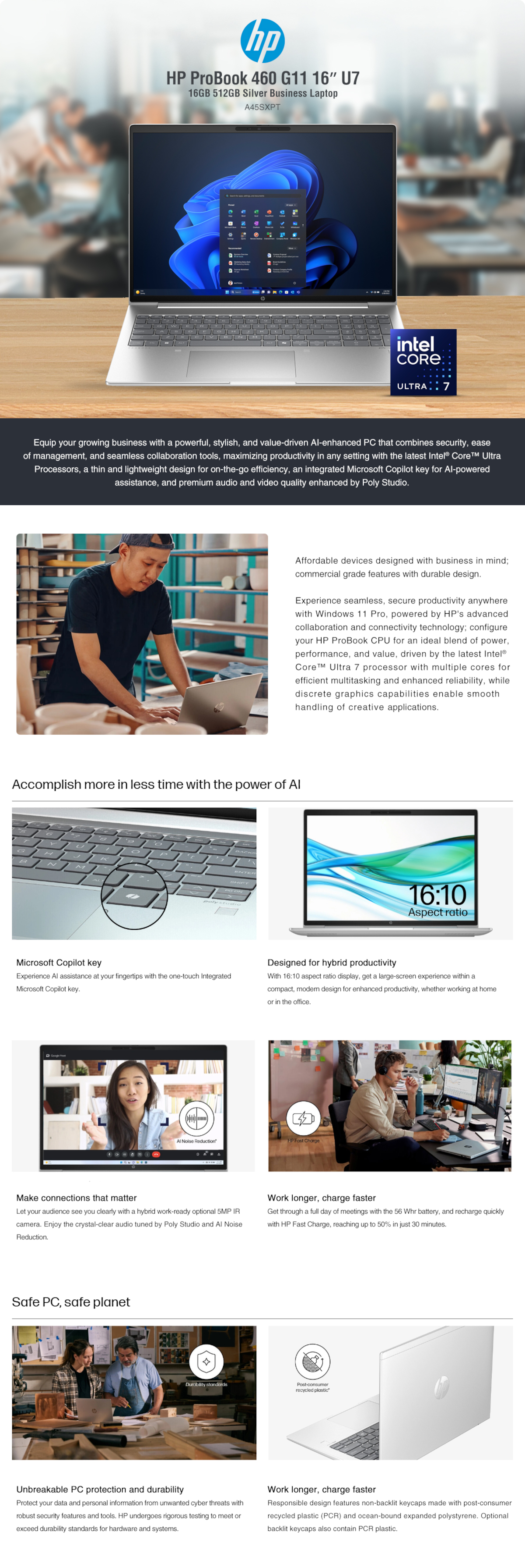 HP ProBook 460 G11 16" WUXGA IPS Ultra 7 155U 16GB RAM 512GB SSD W11P Laptop