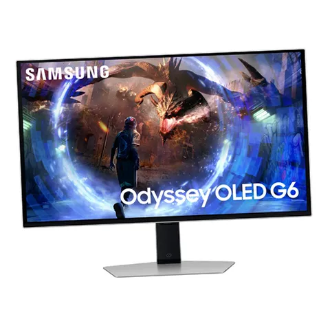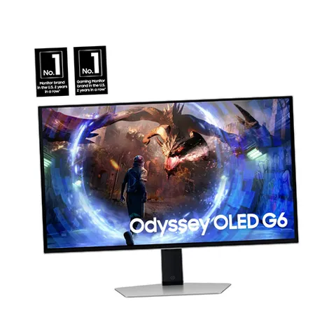 Samsung's OLED G6 Gaming Monitor delivers superior brightness with an expansive spectrum of colors and nearly limitless shades. The 360Hz refresh rate and 0.03ms response time (GtG), along with AMD FreeSync Premium Pro, allow ultra-fast & smooth gaming action. OLED Safeguard+ technology includes a groundbreaking Dynamic Cooling System and thermal modulation that auto-controls brightness to prevent burn-in. OLED Glare Free technology significantly reduces glare from external light sources, and deep black levels with dynamic contrast enable supreme depth expression. Features a sleek metal design and ergonomic stand for optimal comfort when playing for extended periods of time.