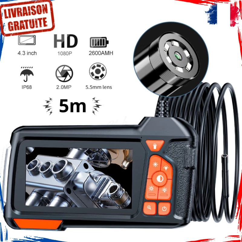 Avec son écran LCD HD 4,3 pouces, sa résolution 1080P et sa tête de caméra ultra-fine de 5,5 mm, inspectez facilement les endroits difficiles d'accès.
