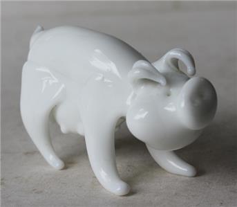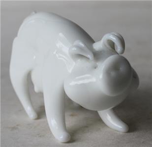 Here is a great All White Art Glass Pig standing with end of tail broken off Pig Figurine. It is Awesome. It is unmarked-SEE ALL PHOTOS. It measures about 1 3/4 inches tall by about 3 inches long. Grab this great vintage collectible while you still can it will not last long.