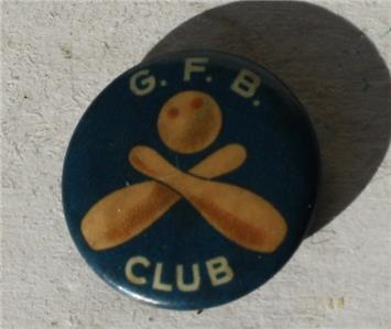 Here is a great vintage Bowling Celluloid Pin Blue Brown Color G.F.B. Club Crossed Bowling Pins and 2 Fingered Bowling Ball Pin. It is Awesome. Great Condition-SEE ALL PHOTOS. It measures about 3/4 inches tall by about 3/4 inches wide. Grab this great vintage Bowling Collectible while you still can it will not last long.