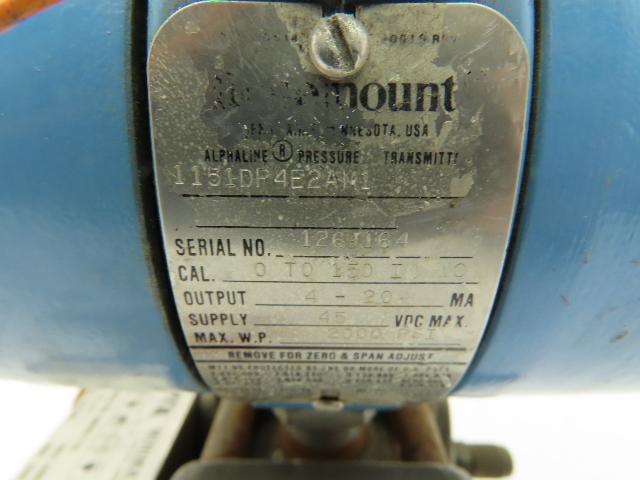 Rosemount 1151DP Pressure Transmitter 0-150" WC 3-Way Minimatic Valve MM4B-T-SS Rosemount