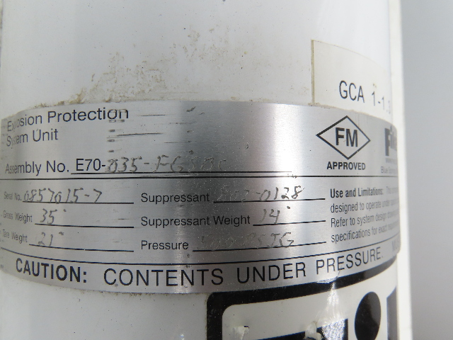 Fike E70-035-FGSBC Explosion Protection Unit 2 Gallon Tank 500 PSI Fike