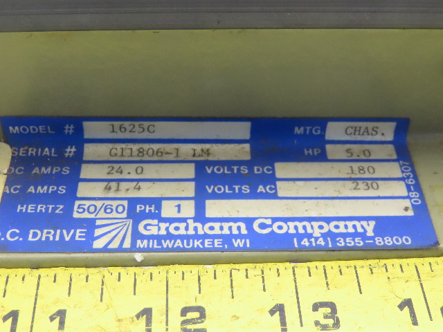 Graham Company 1625C DC Drive 230VAC Input 180VDC Output 50/60 HZ 1Phase 5HP