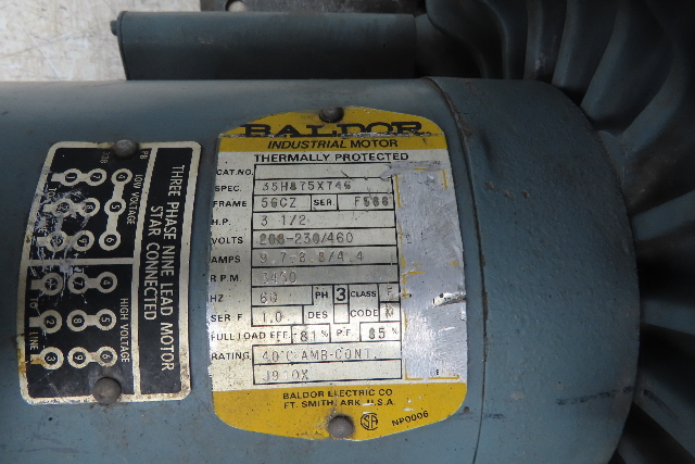 Baldor 35H875X746 Regenerative Blower Vacuum Pump 3.5Hp 3450rpm 230/460V 3PH Baldor
