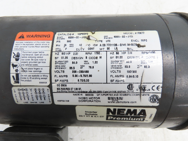 Grove Gear 60:1 Double Reduction Gearmotor 14 RPM Output RH 2Hp 460V 3PH 56C Grove Gear