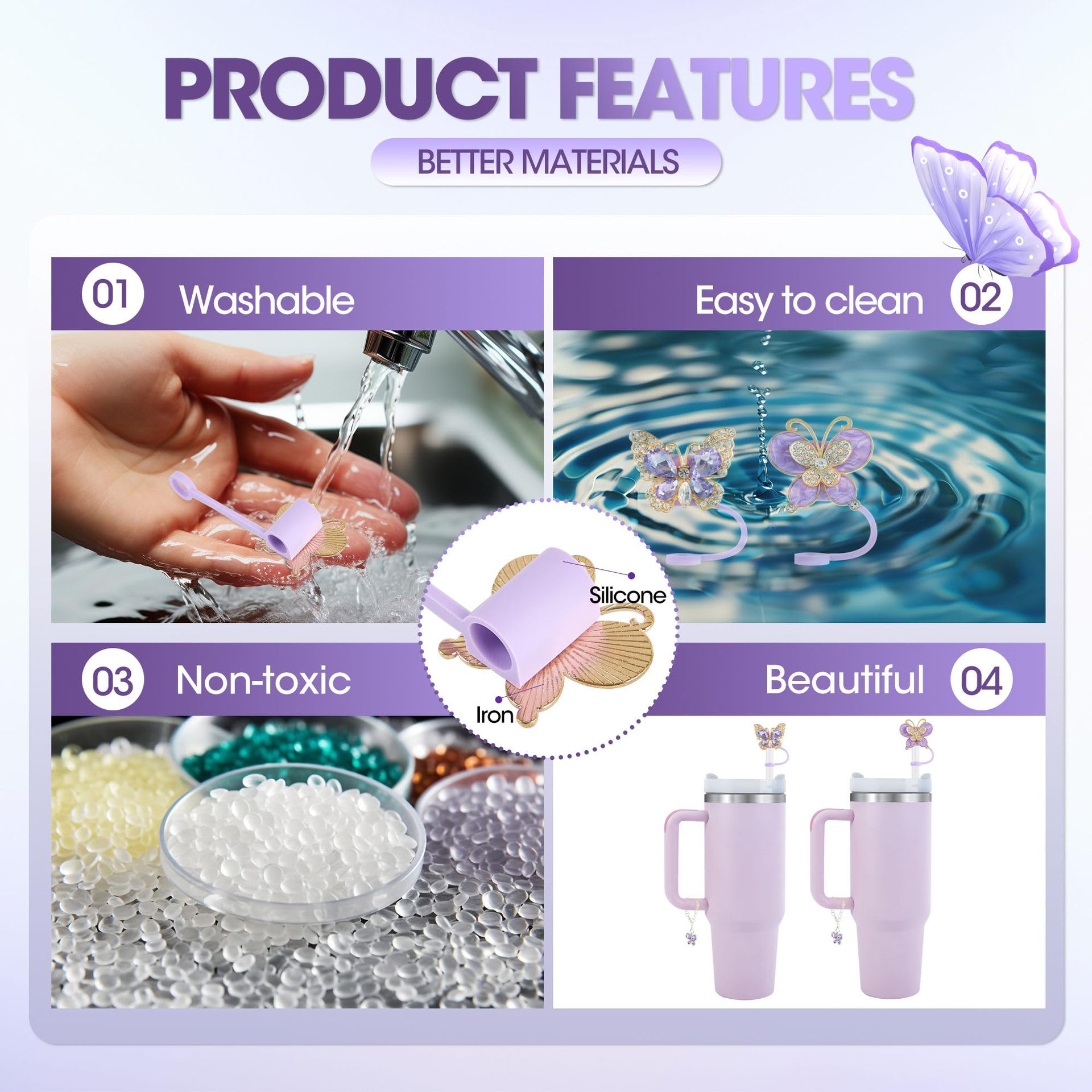 🥤Quality Food Grade Material -These straw toppers caps are made of food-grade silicone, safe and harmless, reusable, and easy to clean by hand or in the dishwasher. They're airtight and sealed, making them perfect for outdoor activities.