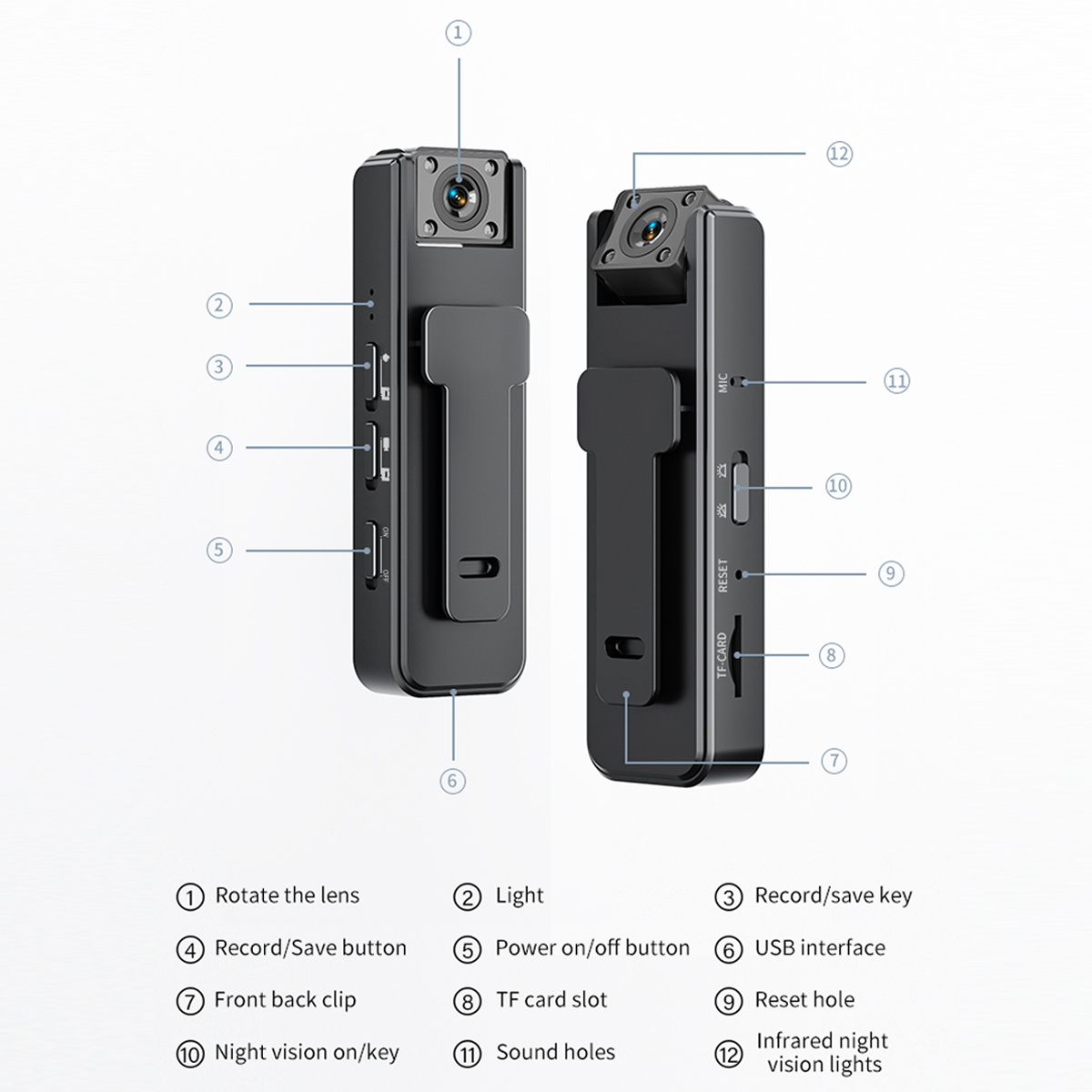* HD law enforcement recorder with ultra-long battery life, infrared night vision, high-definition anti-shake, both video and audio recording;