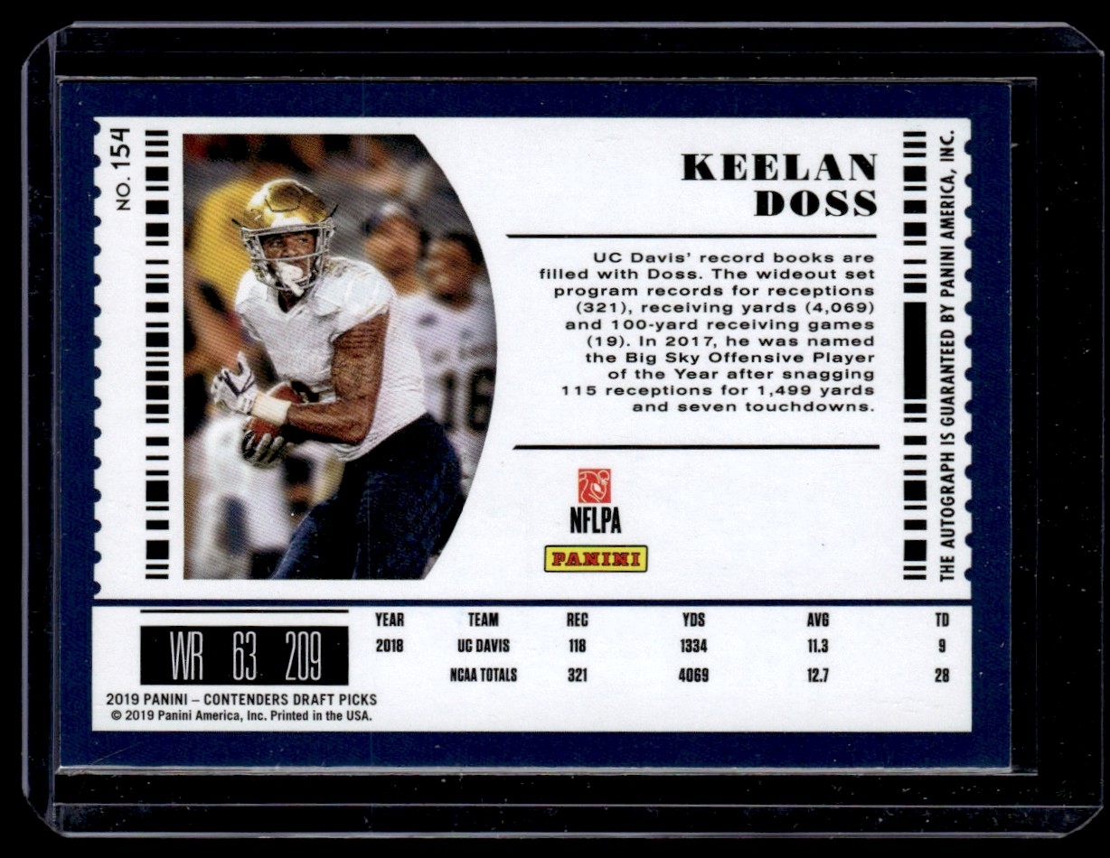 2019 Panini Contenders Draft Ticket Auto Keelan Doss Auto #154 B