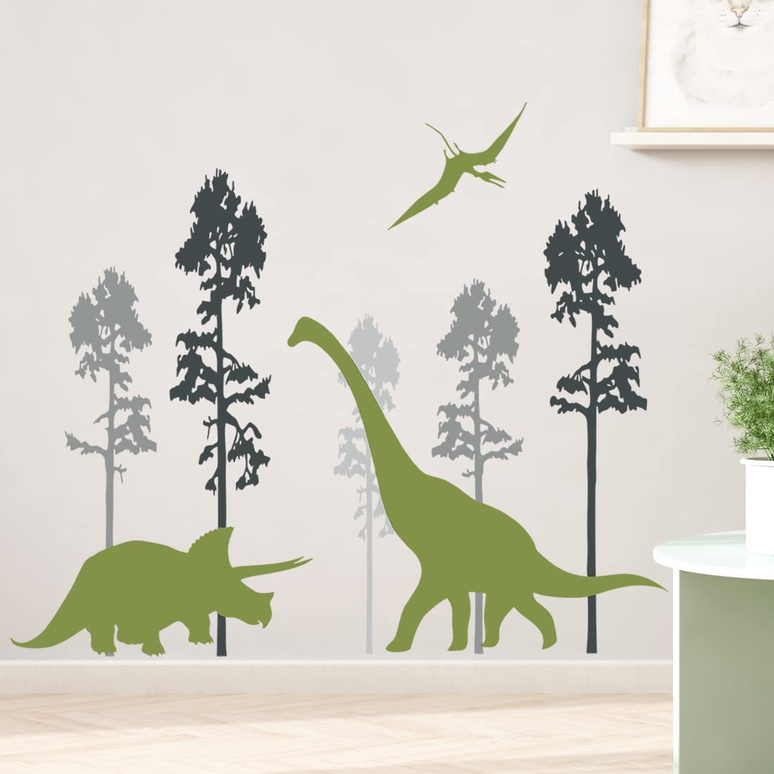 Green Dinosaur Vinyl Wall Decals, 2 Sheets, Giant Tree Decoration for Kids Teens Bedroom Living Room Nursery Playroom Decor