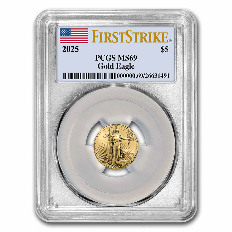 Choosing the 2025 1/10 oz American Gold Eagle offers a combination of near-perfect grading, early release verification, and the reliability of a government-backed investment. As Americas first official gold bullion coin, it is backed by the U.S. government for its gold content and legal tender status. The MS-69 grade, combined with the FirstStrike® designation, ensures this coin is both a high-quality and historically significant addition to any collection.