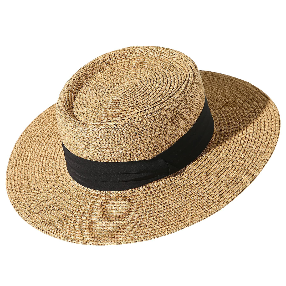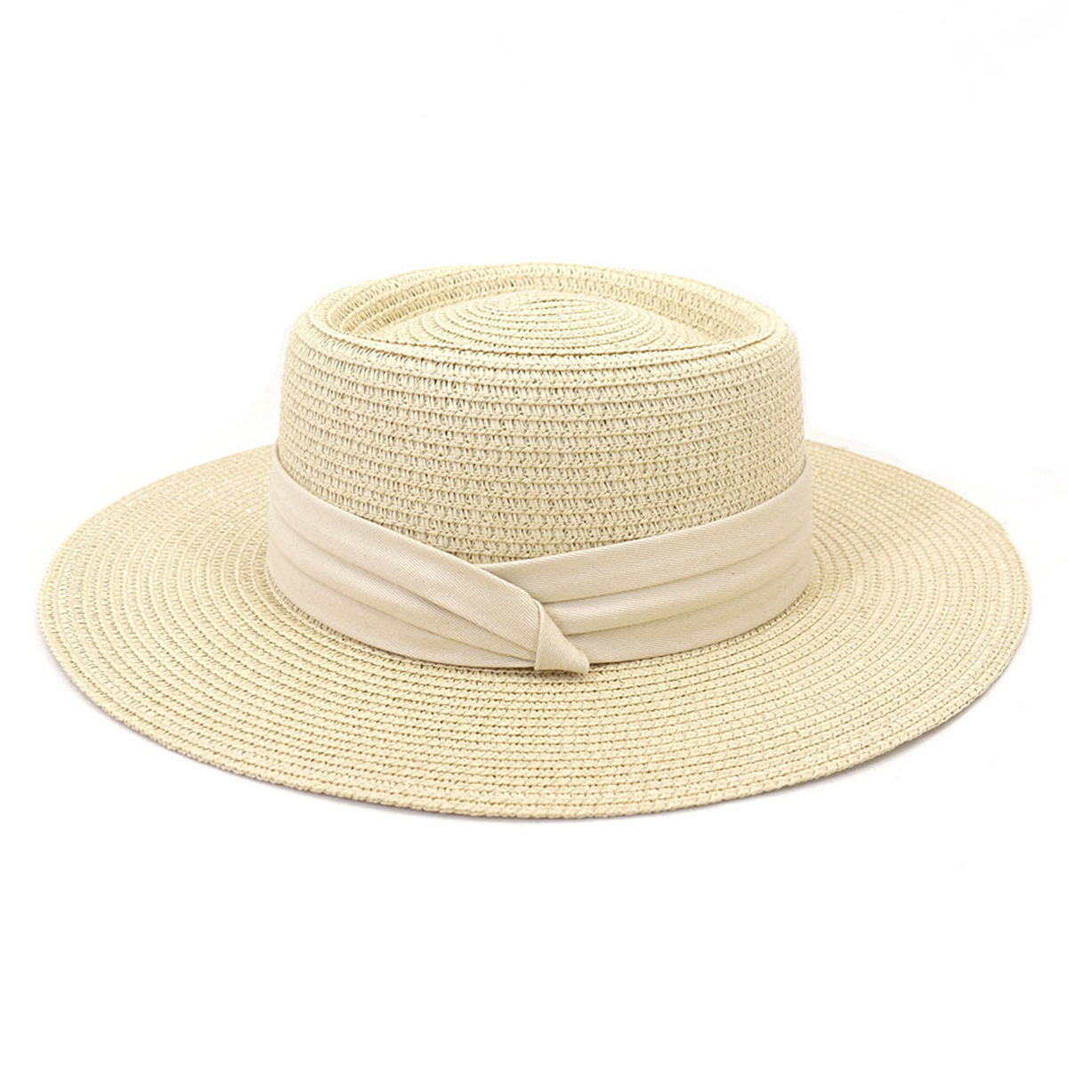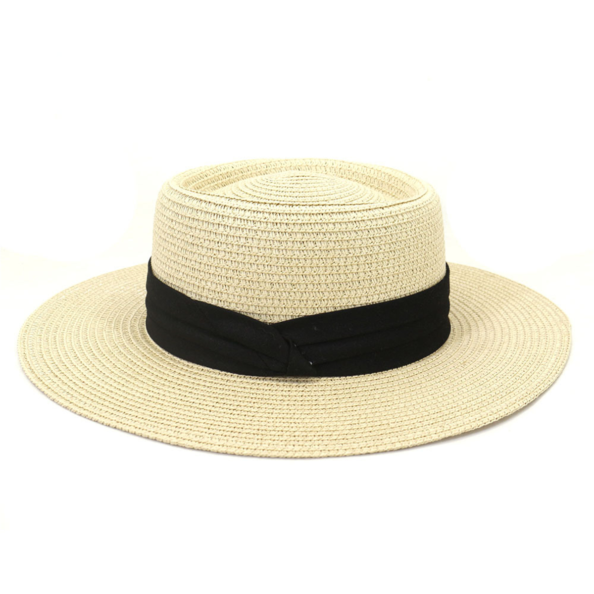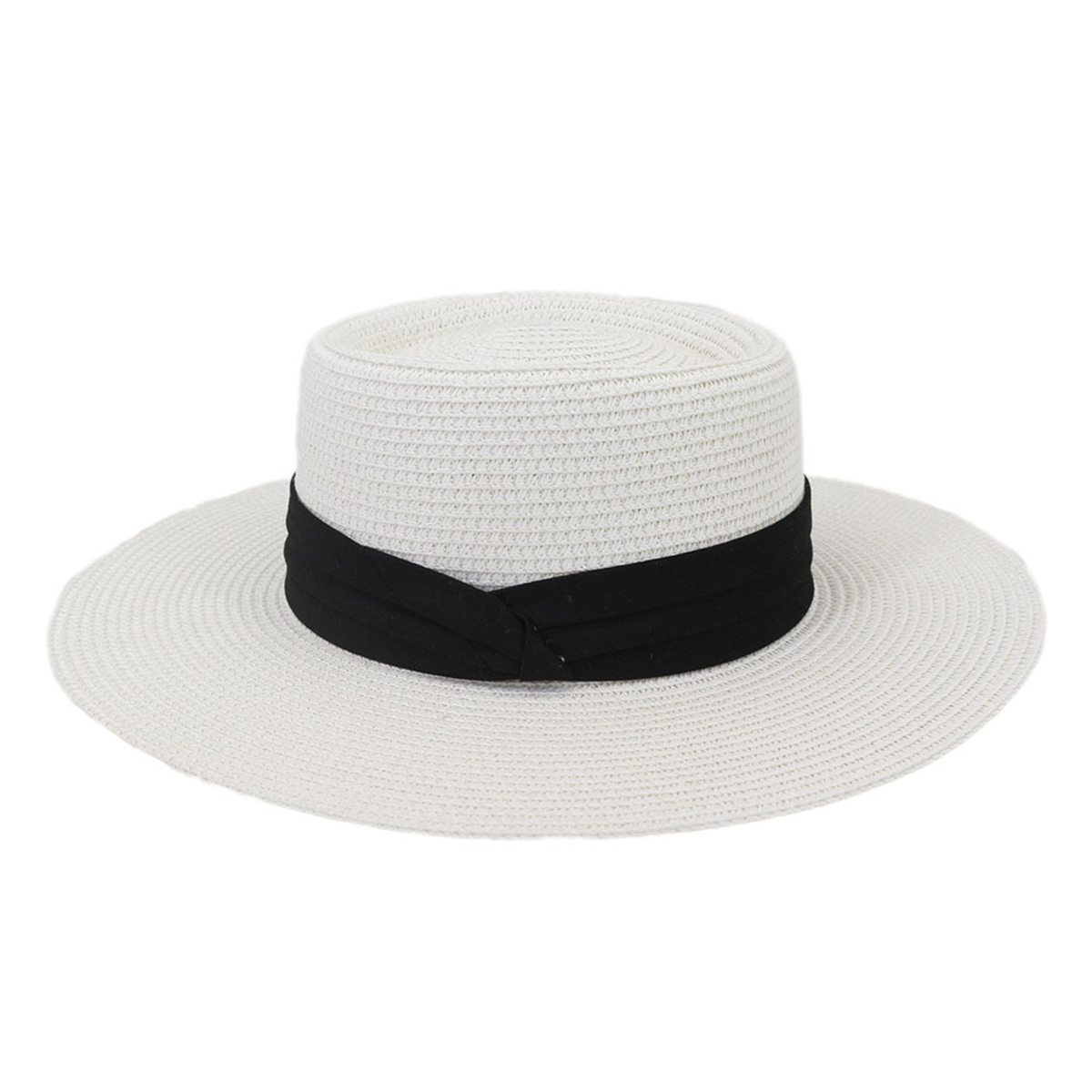 Summer Straw Boater Hat Wide Brim Summer Beach Sunhat Flat Top Caps Women Men
