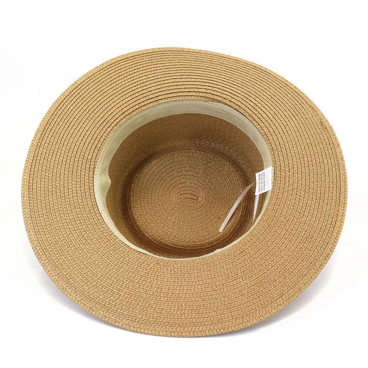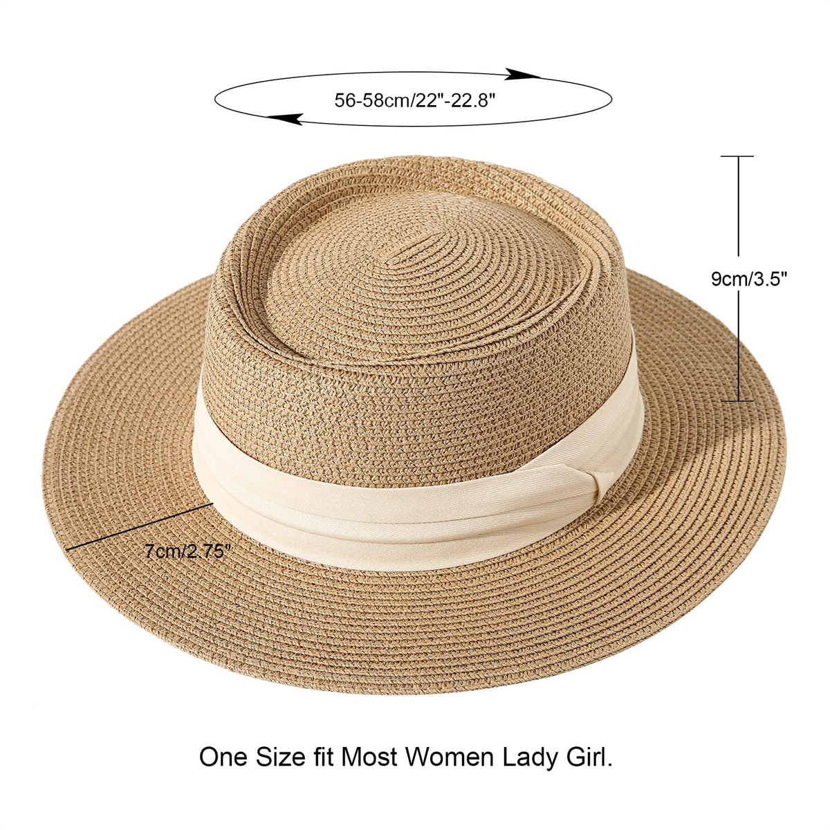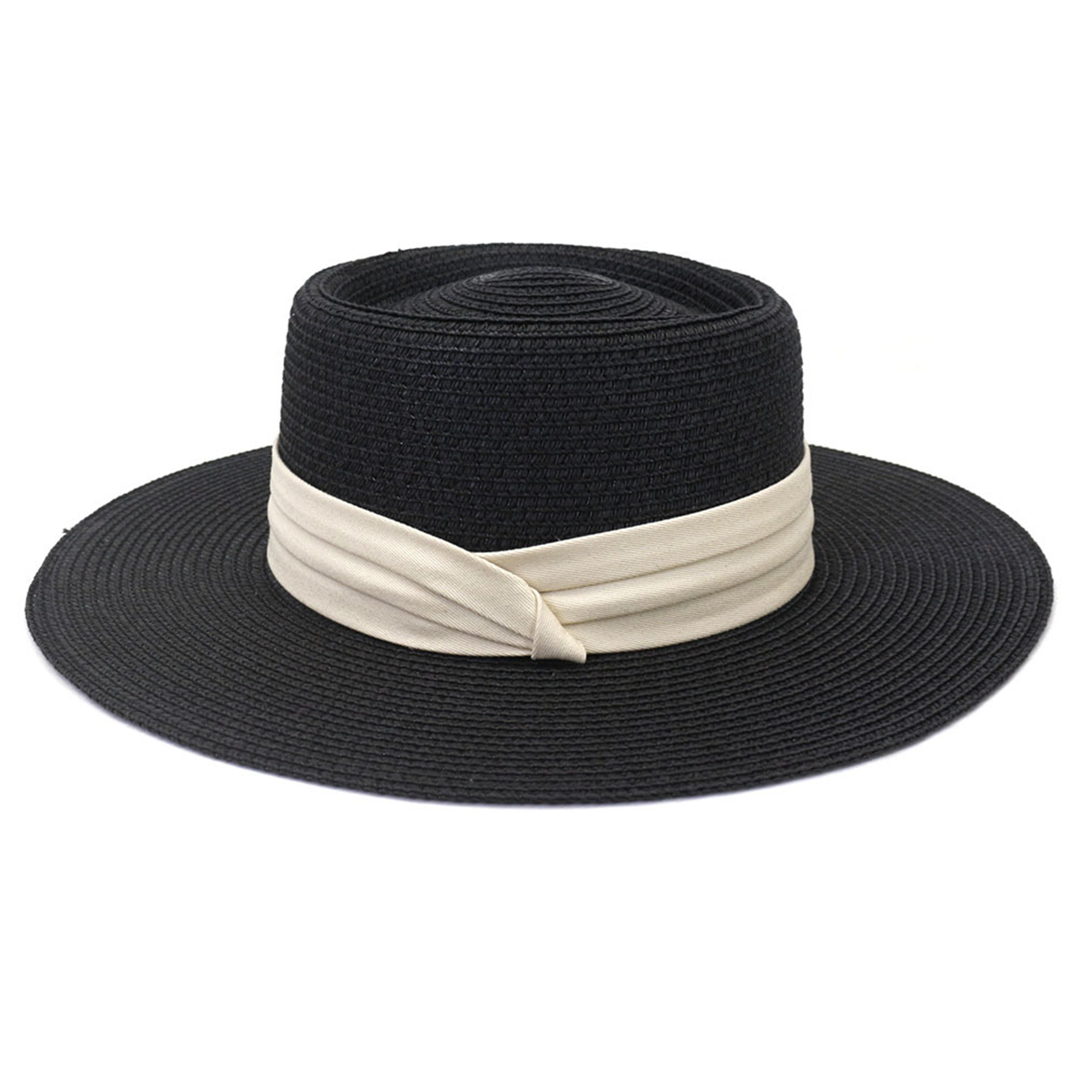 Summer Straw Boater Hat Wide Brim Summer Beach Sunhat Flat Top Caps Women Men