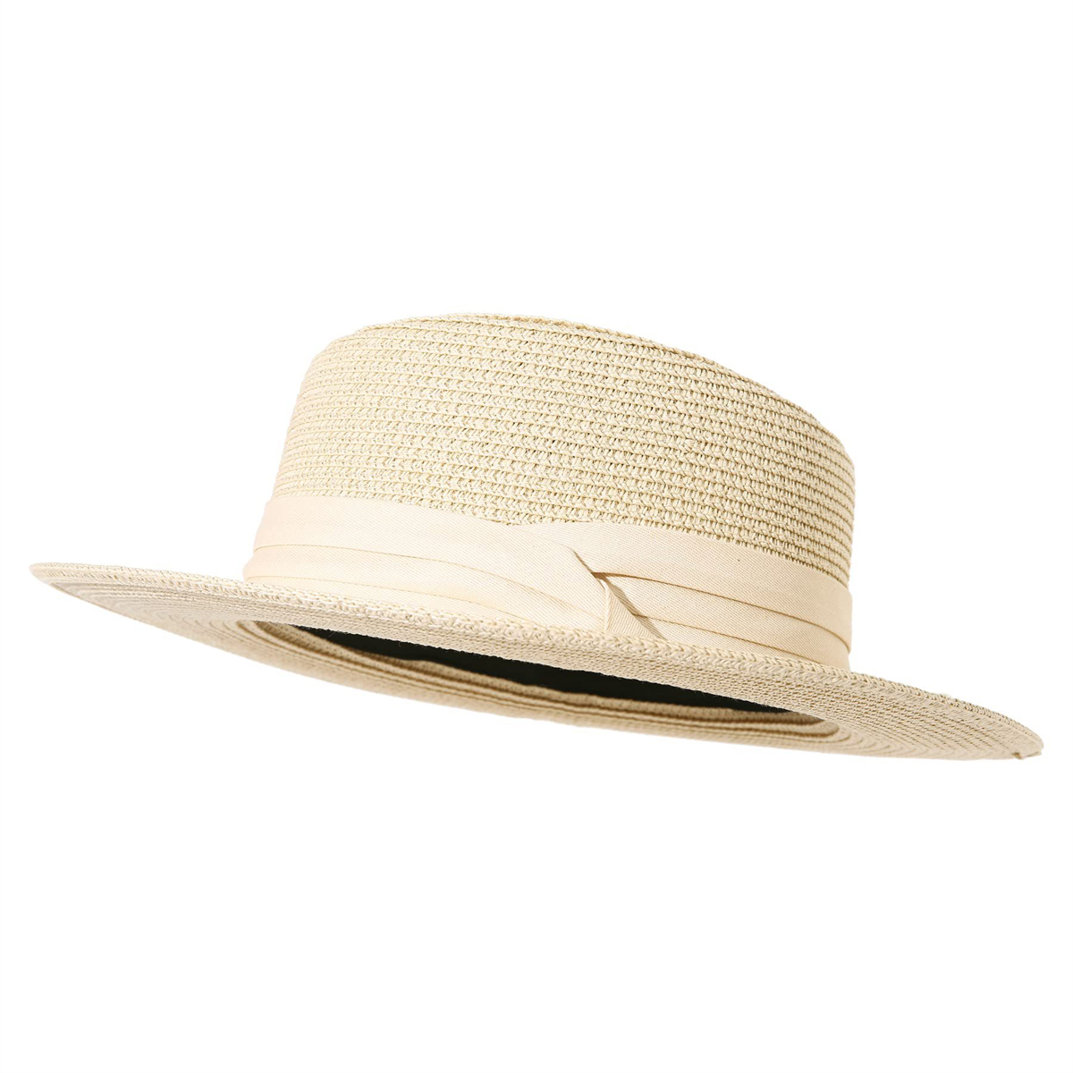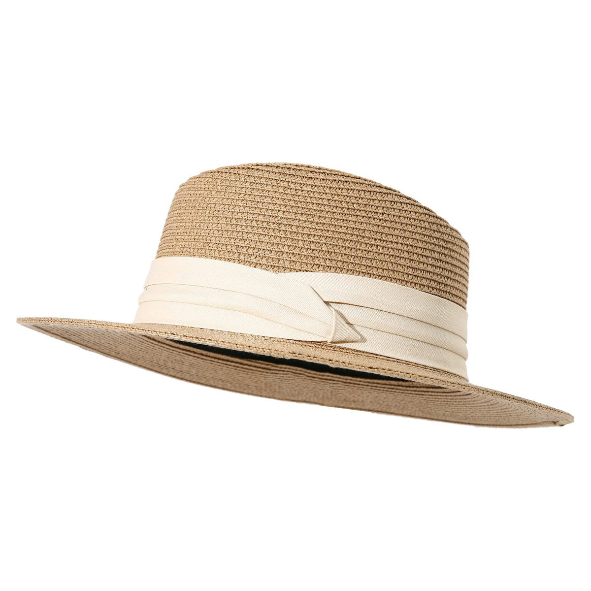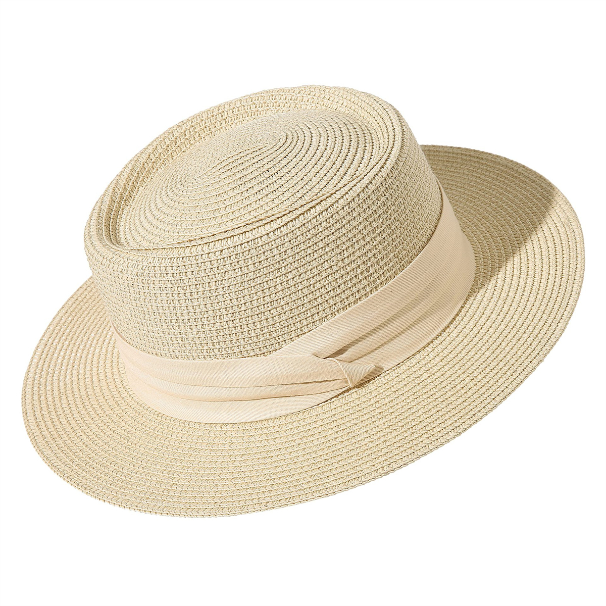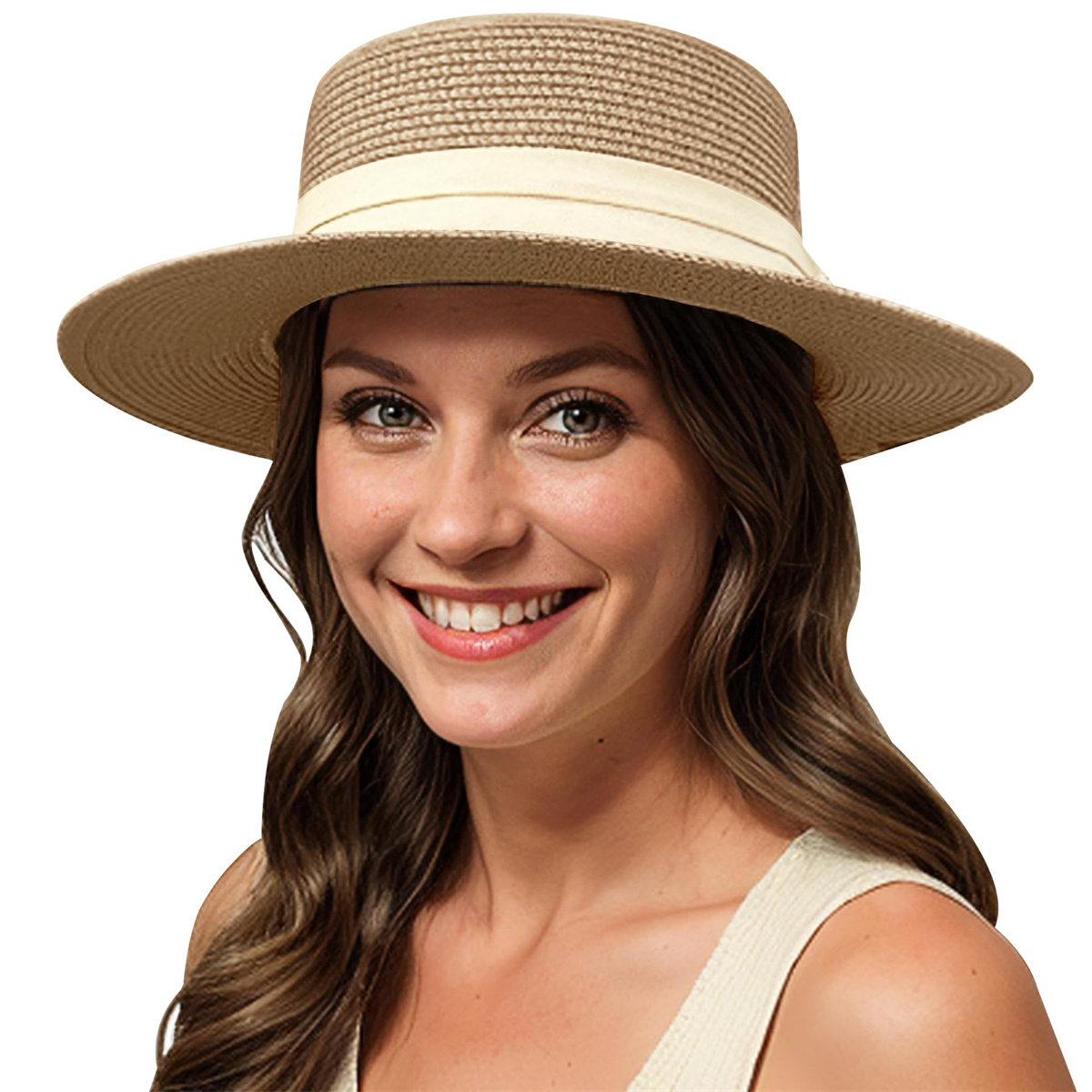 Summer Straw Boater Hat Wide Brim Summer Beach Sunhat Flat Top Caps Women Men