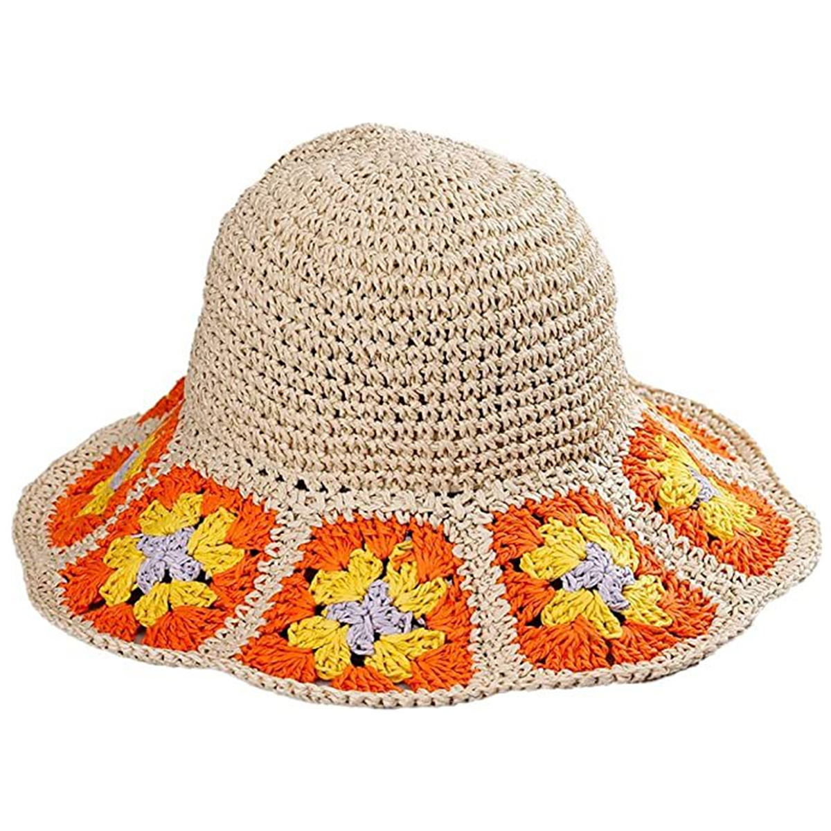 Women Boho Sun Protection Hat Packable Wide Brim Summer Floppy Beach Hat Crochet