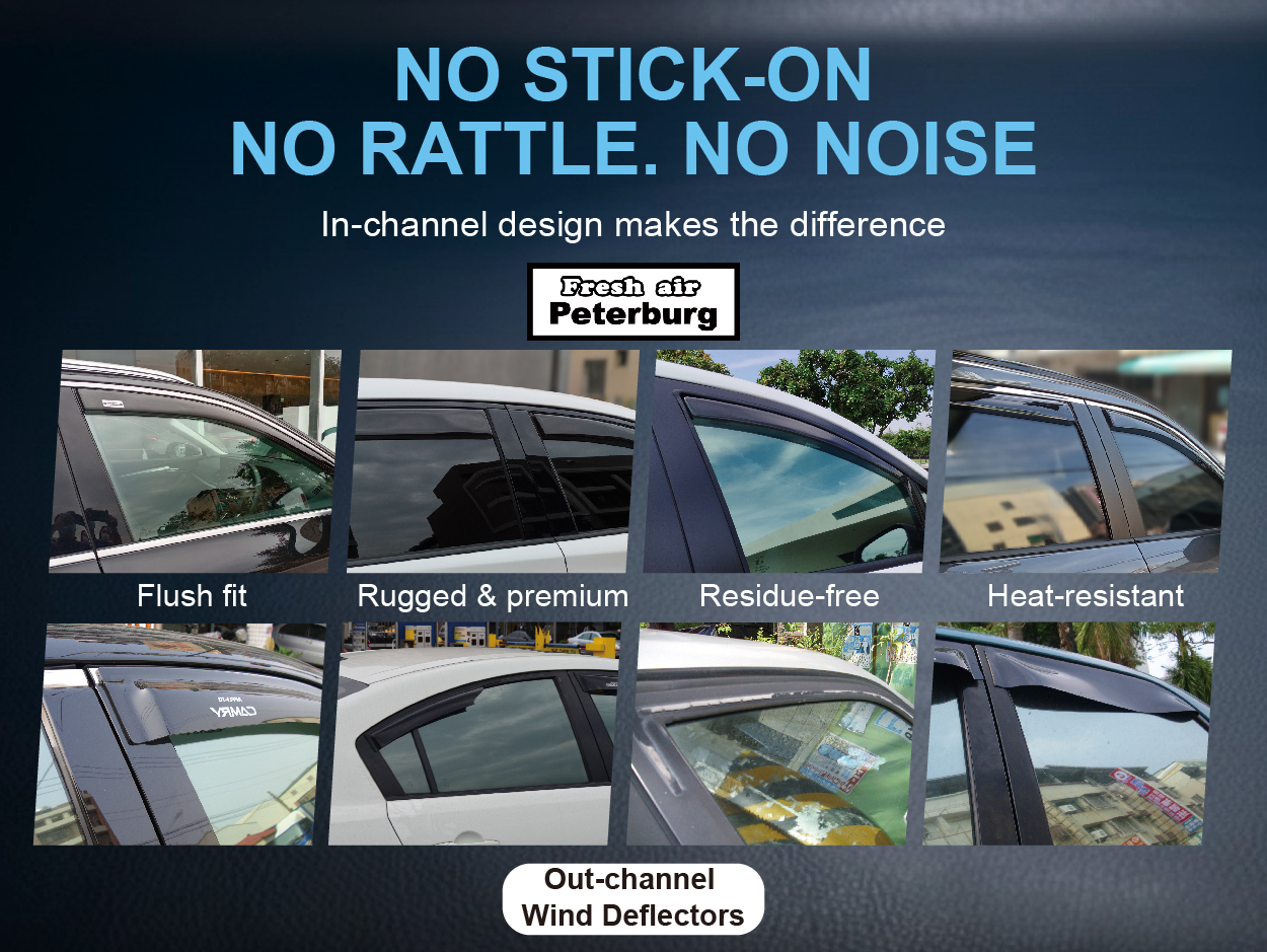 These car window deflectors are made for specific models with high precision. Not only is it easy to install, but it also comes with components which help the installation process. On the other hand, the product can be easily fixed by yourself if any defect happens (please watch the video in the listing image section for further tutorial).