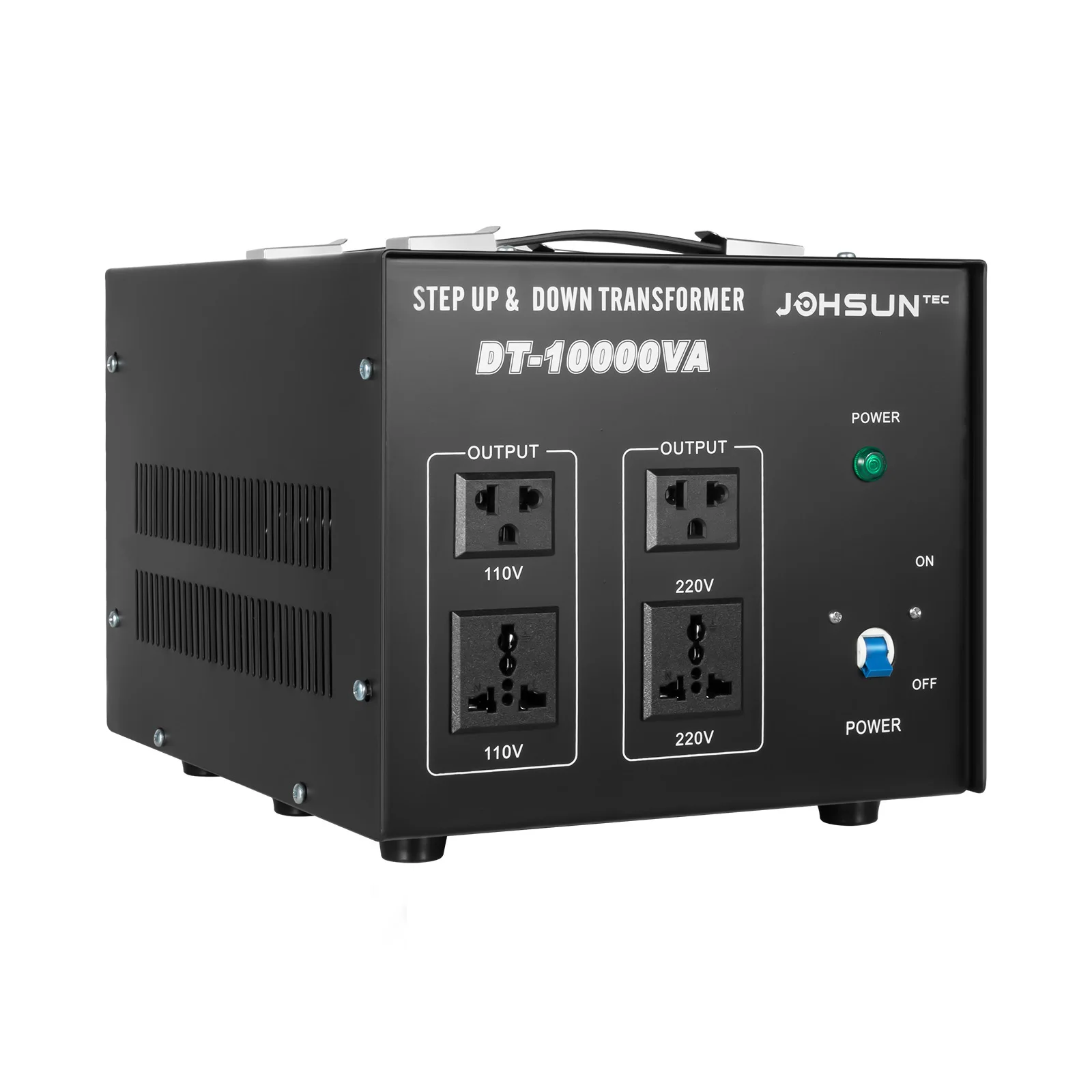 Voltage Converter Transformer 10KVA Portable DT-10000VA Heavy Duty Power Converter Step Up/Step Down 110V to 220V 220V to 110V Iron Rectangular 4 Sockets Voltage Converter Black for Household Appliances