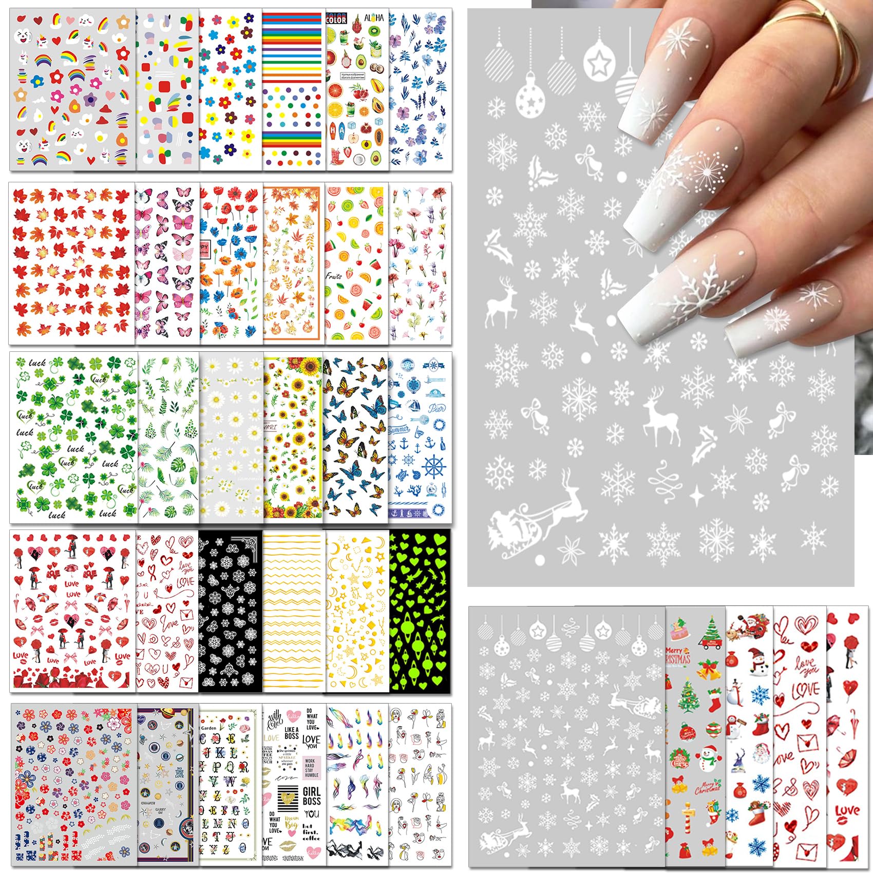 36 Sheets Varied Nail Art Stickers, All Holiday Variety Pack Seasonal Nail Decals, Self-Adhesive Pegatinas Uñas Colorful Design for Flowers Butterflies Luminous Star Halloween Christmas