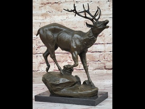 This genuine bronze sculpture, created using the lost wax method, stands as a testament to the sculptor's dedication to his craft. The elk, intricately detailed and gracefully posed, embodies the essence of its existence as it moves through a forest setting. The sculpture is in excellent condition, maintaining its beauty and integrity over time. Resting on a marble base expertly sculpted to resemble the rugged terrain of the wilderness, the elk becomes a harmonious part of its natural surroundings, adding an extra layer of authenticity to the piece. Signed by Milo, this artwork is not just a representation of an elk; it is a celebration of the artist's talent and the enchanting presence of wildlife.
