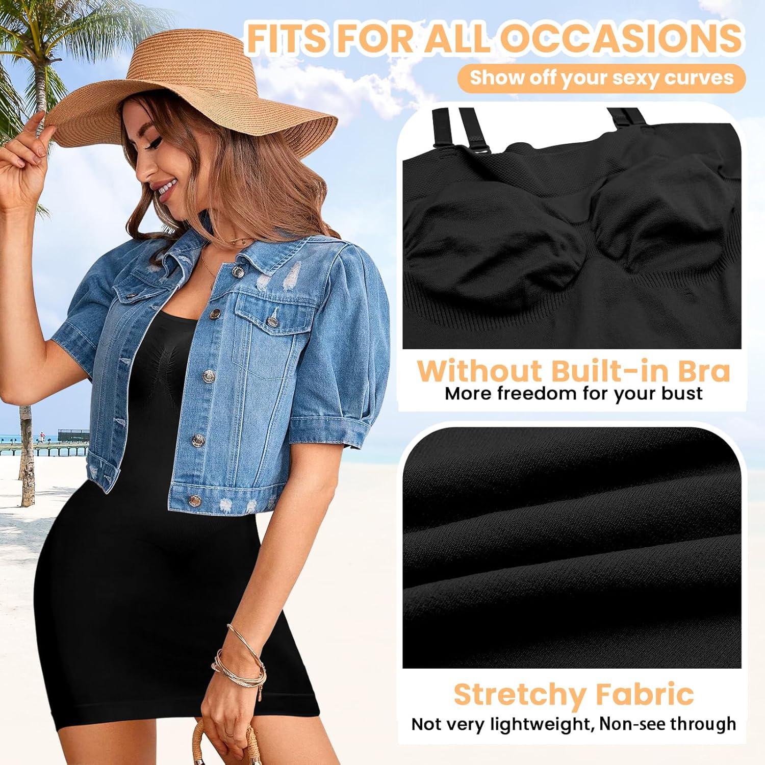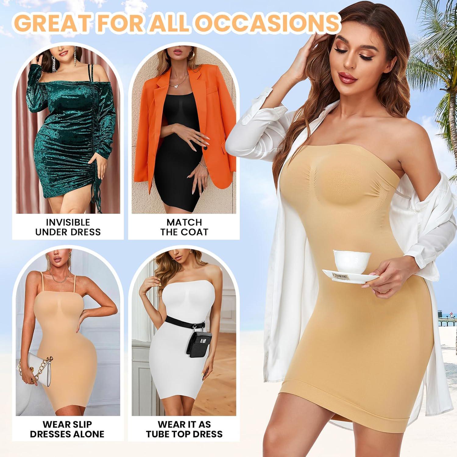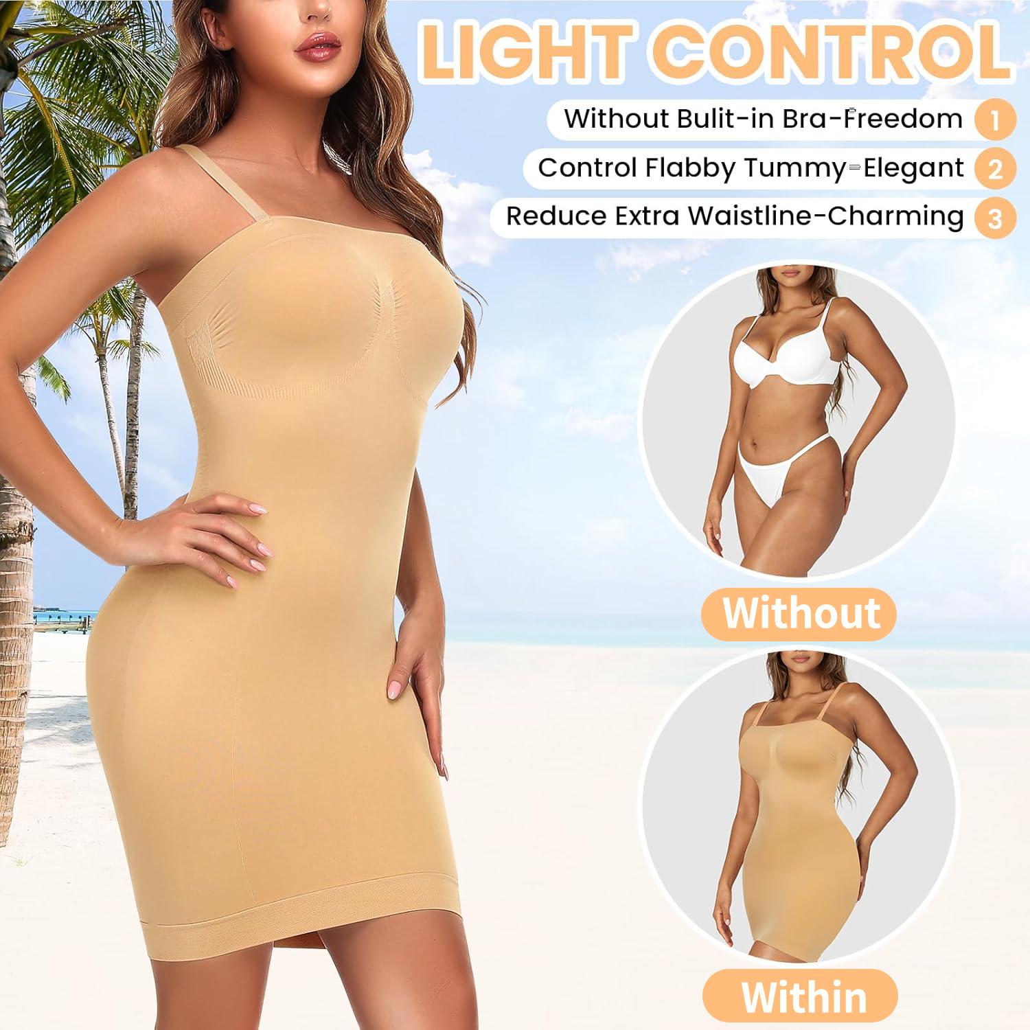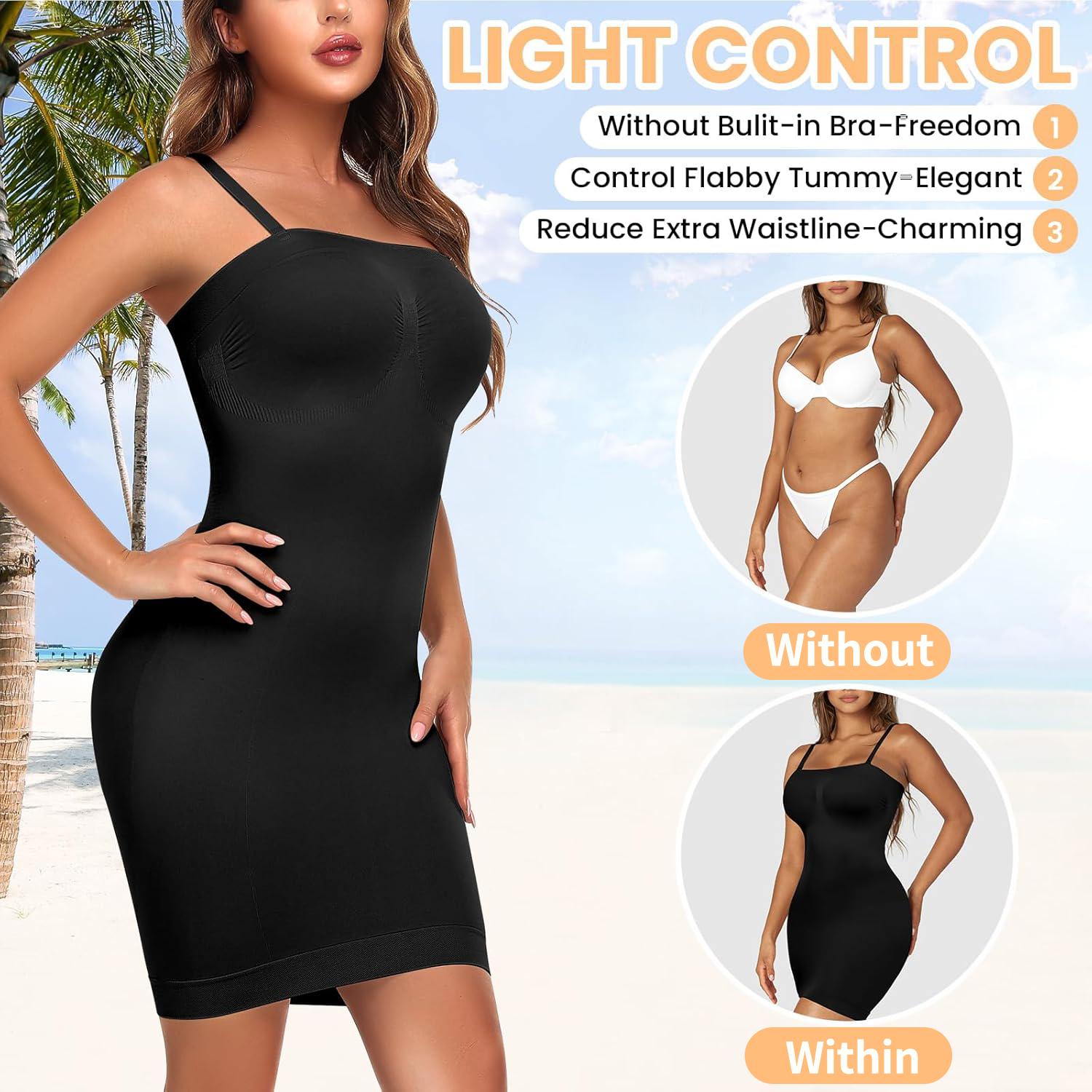 FOR ANY OCCASIONS: this plus size strapless shapewear slip dress full body shaper for Under Dresses is perfect for any occasion, as it is , lightweight, stretchy, and the perfect length. It is invisible beneath your daily clothes and can be worn to clubs, parties, weddings, dates, work, holidays... Our light tummy control full slip for women under dress with adjustable spaghetti strap is a Gift Ideal for wife, girlfriend, postpartum mothers, and who wanna shape their curves