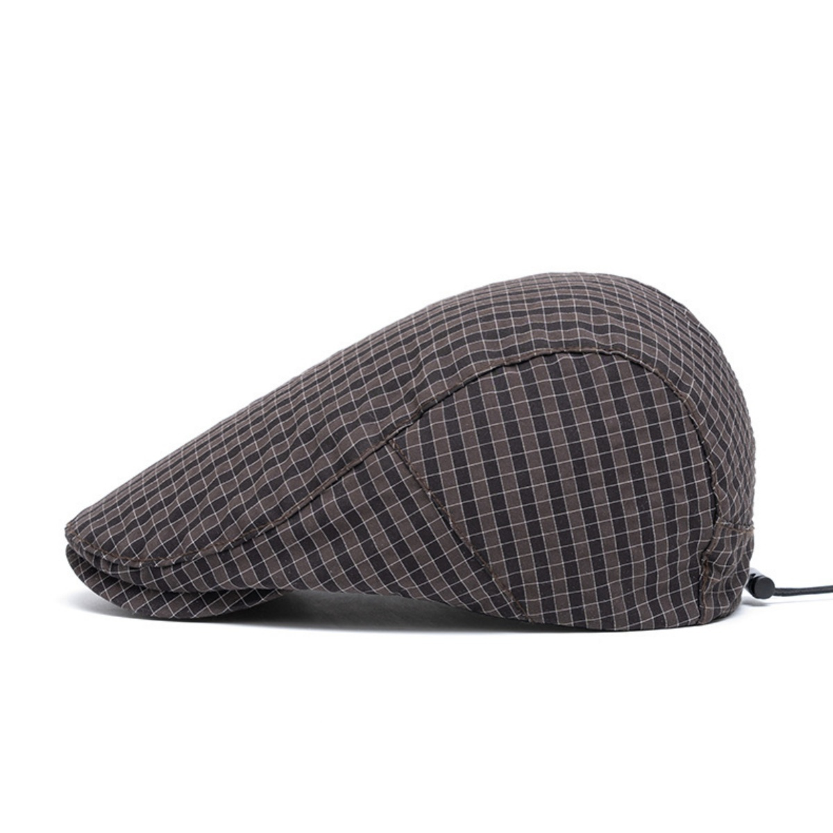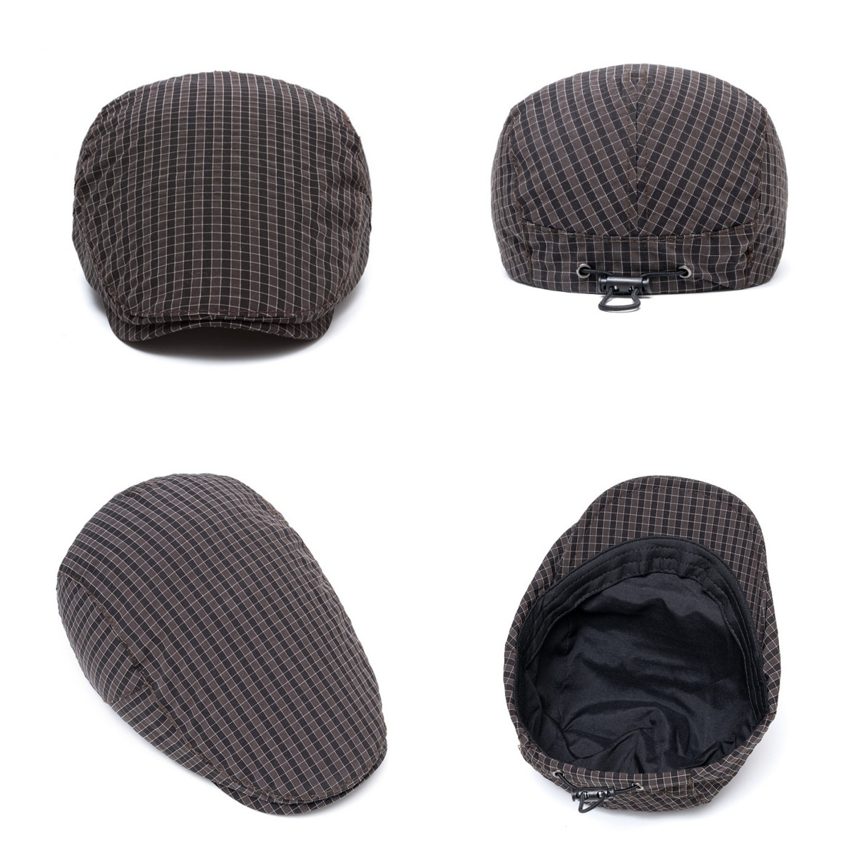 Men Adjustable Beret Hat Check Plaid Newsboy Cap Cabbie Beret Driving Flat Hat