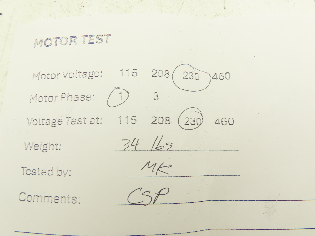 • Voltage tested at and wired for:: 230V 1PH