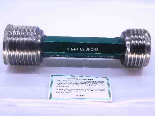 NEW 2 1/4 4 1/2 UNC 2B THREAD PLUG GAGE 2.25 GO NO GO P.D.'S = 2.1057 & 2.1183