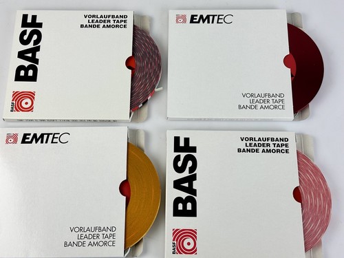 New BASF EMTEC Leader Tapes (820 FT. - 1/4 Inch) in Red, Yellow, Red-White oder Black-White Red. The boxes have signs of storage. The price is for one leader tape. Please contact us if you want to purchase a larger quantity (>10). Please also check our other Ebay offers.