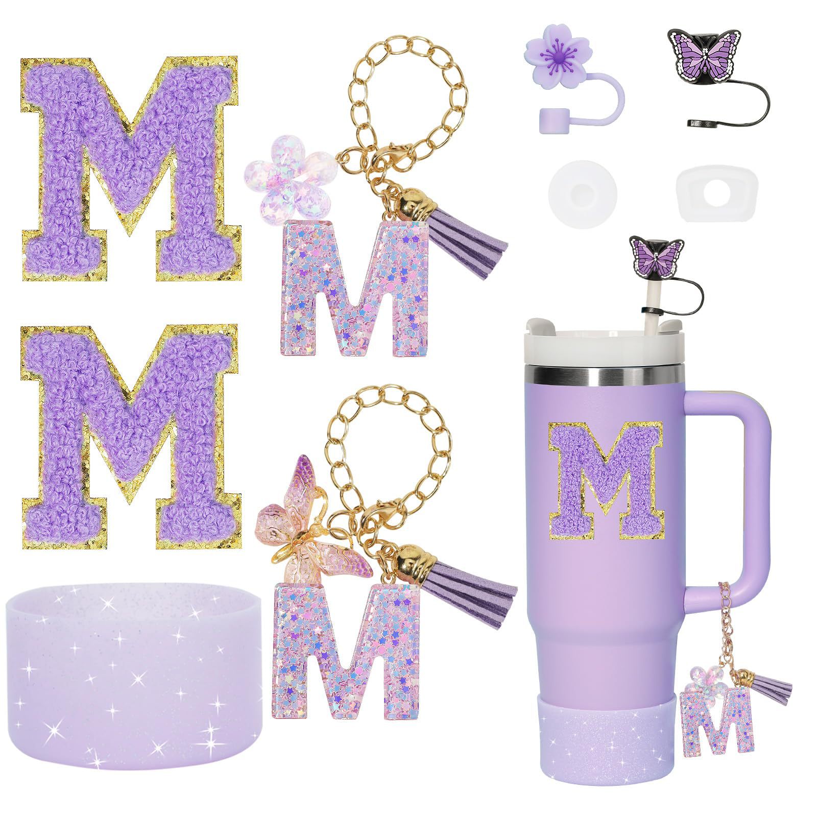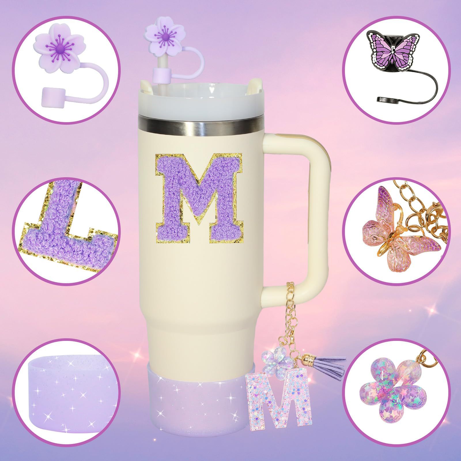 9PCS Stanley Cup Accessories Set,Compatible with Stanley Cup 30oz 40oz,Including 2PCS Stanley Straw Cover and Boot,Spill Proof Stopper,2PCS Handle Charm, 2PCS Sticker Letter