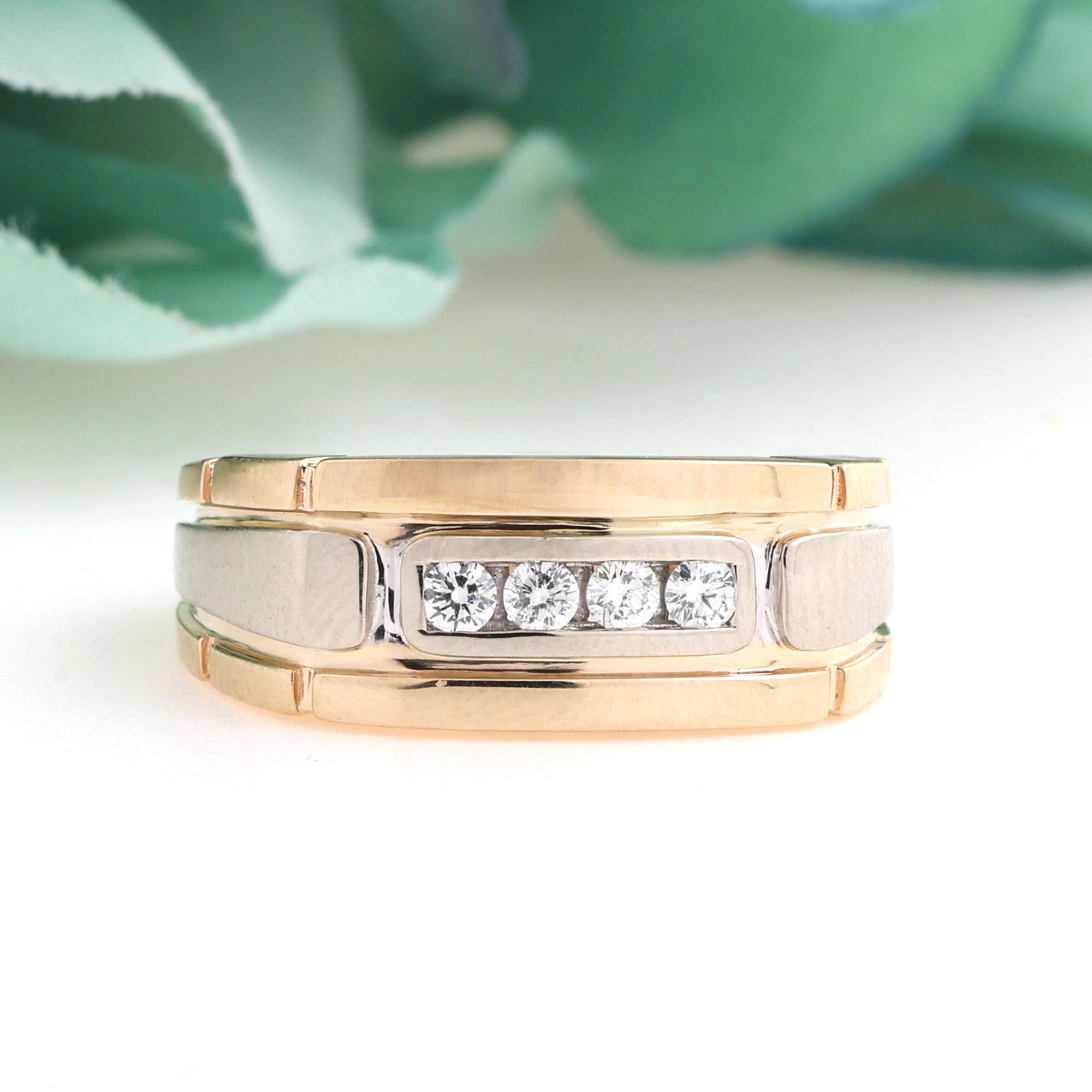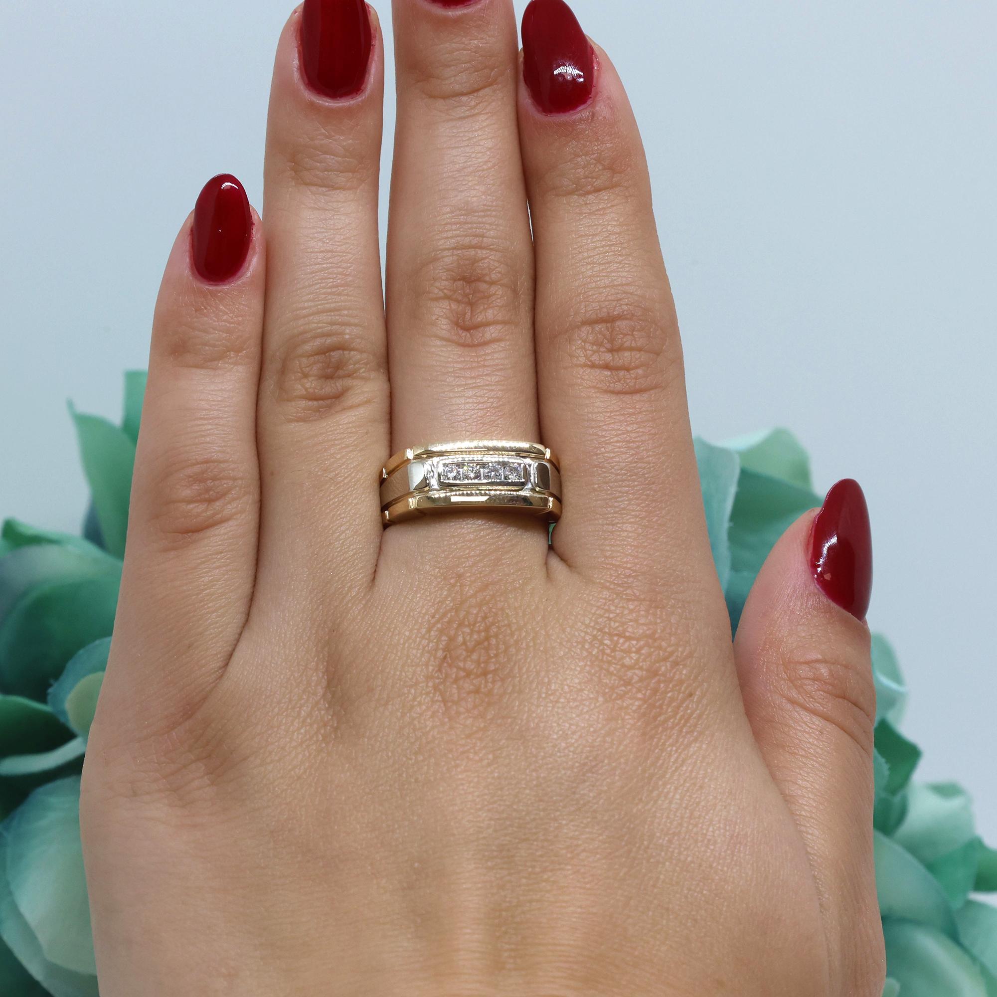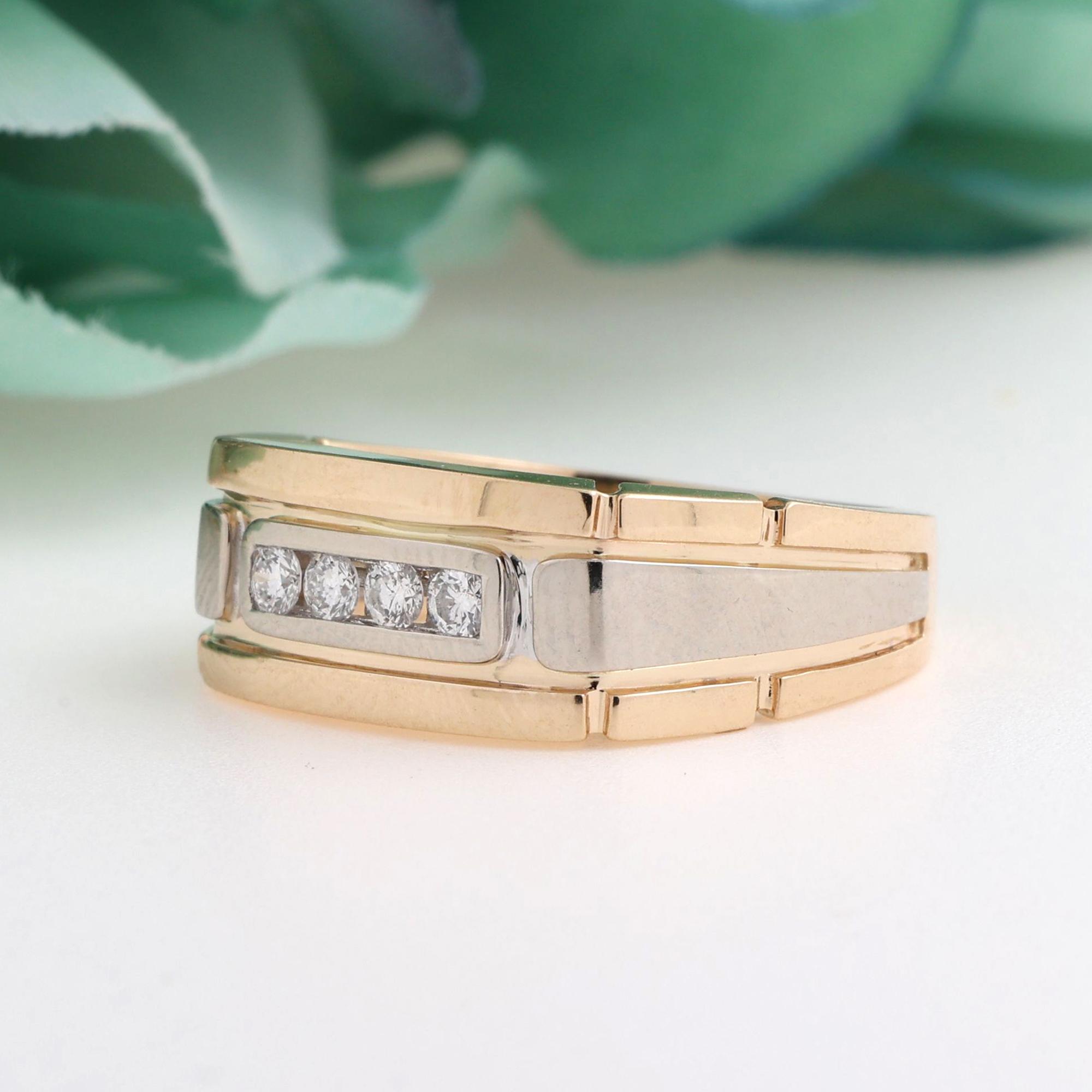 4-Stone Diamond Ring 14K Gold 0.20 TW Diamonds Size 9 Unisex Estate