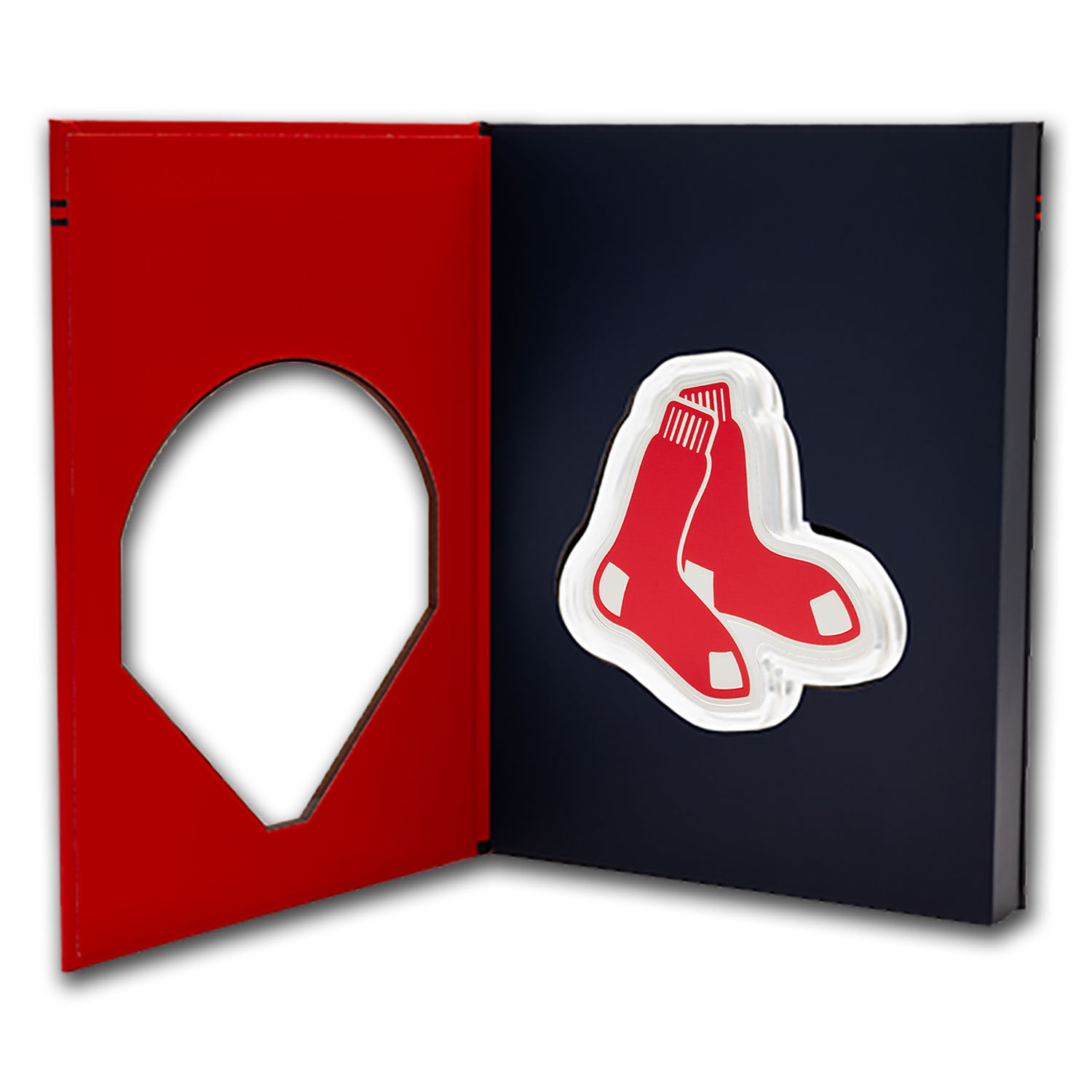 - Reverse: Features the treasured Boston Red Sox team logo in color while the background is left engraved with a striking mirror-finish.