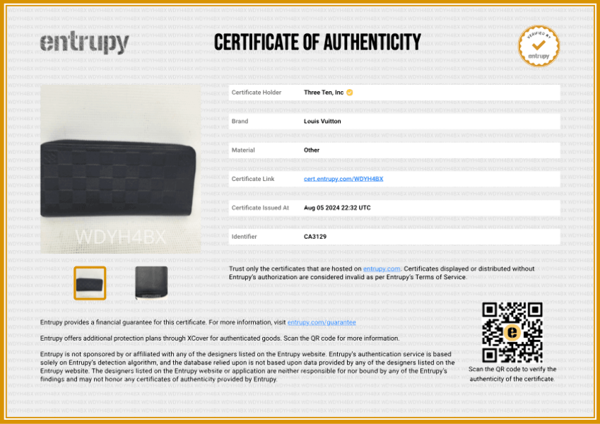 It comes with Authenticity from Third-Party Entrupy.