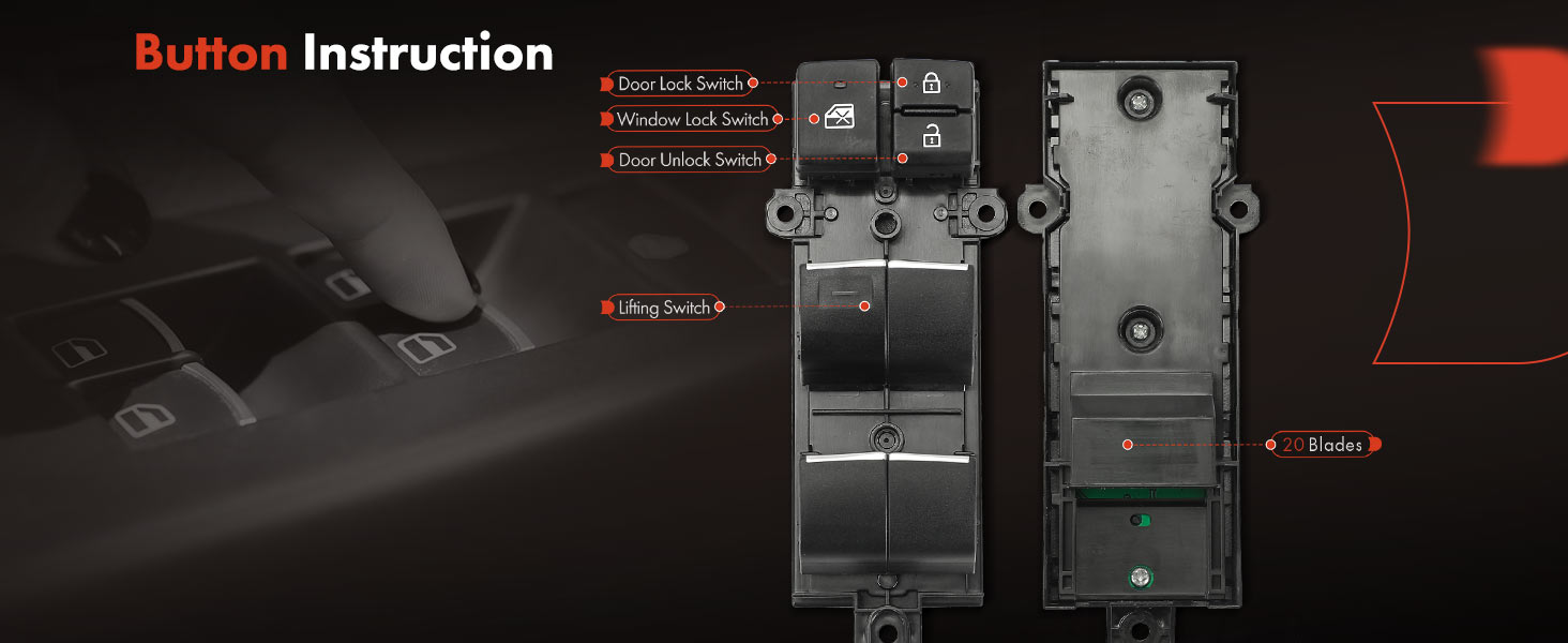 A-Premium Front Driver Power Window Switch for Toyota RAV4 C-HR 19-21 20-Blade