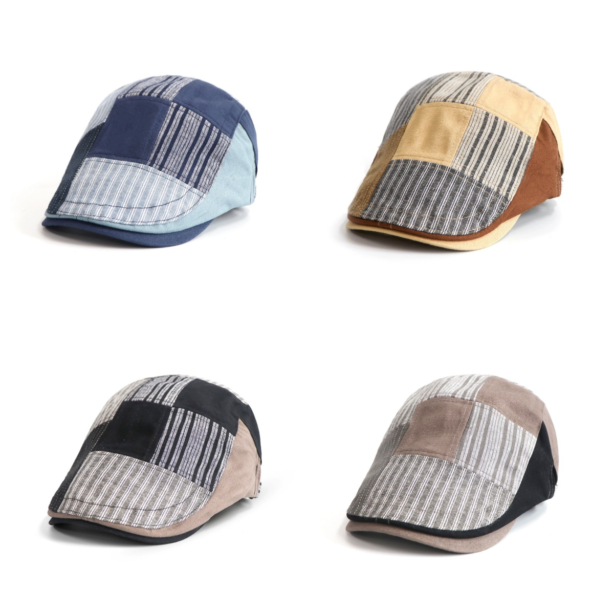 Men Women Beret Newsboy Hat Patchwork Flat Cap Cabbie Golf Driving Casual Retro